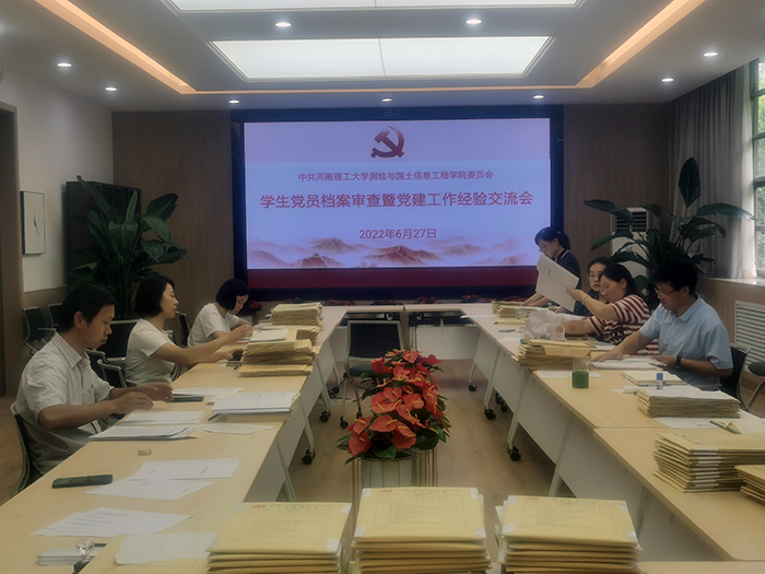 为深入学习贯彻习近平新时代中国特色社会主义思想,全面贯彻落实好新时代党的组织路线,扎实开展“能力作风建设年”活动,测绘学院党委坚持以能力作风建设提升党建工作水平。2022年6月27日在二楼党建活动室召开学生党员档案审查和党建工作经验交流会,会议由茹艳书记主持,专职组织员李晶晶和全体学生党支部书记参加。