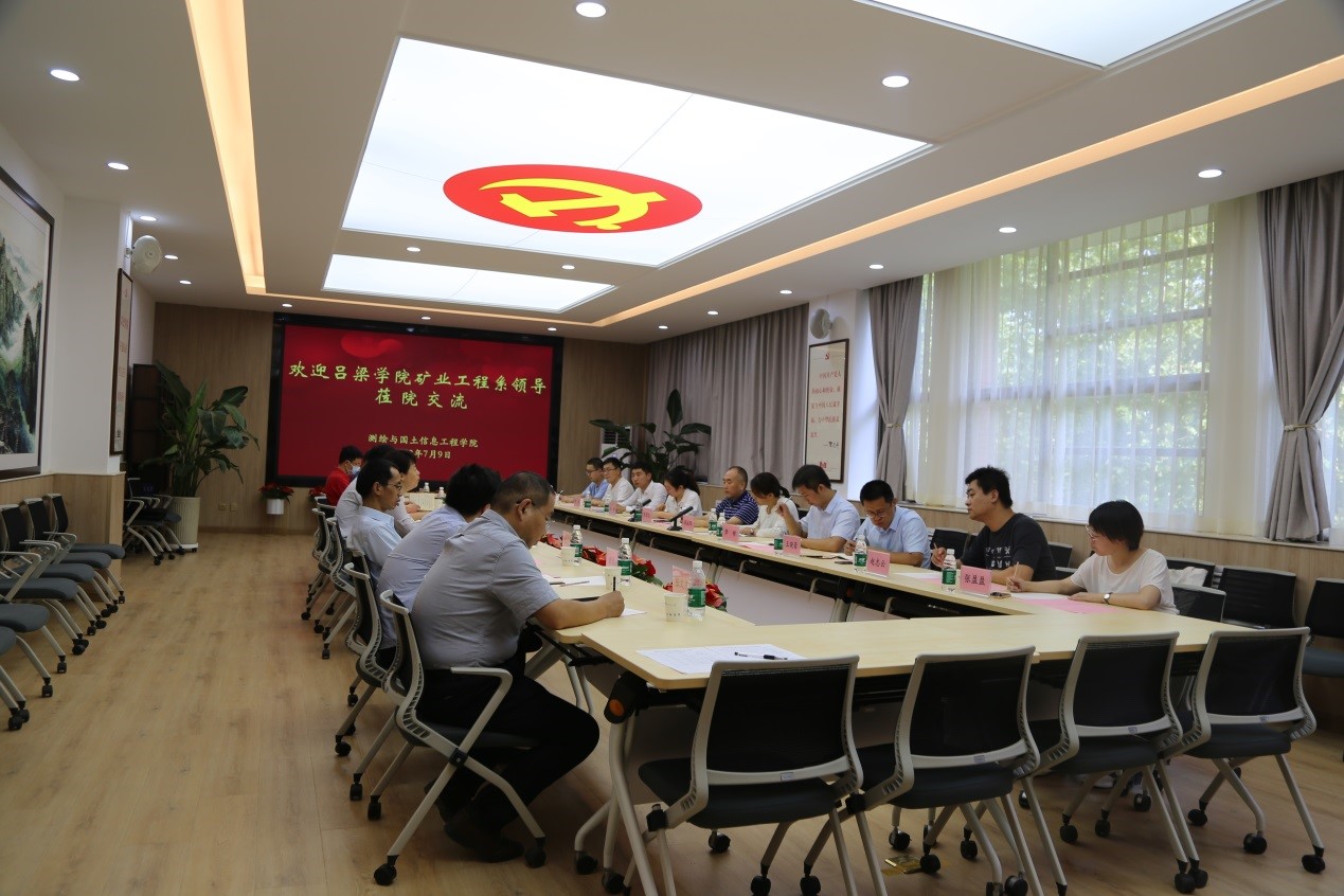 7月9日上午,吕梁学院矿业工程系党总支书记薛淑萍、系主任宋宏志一行10人莅院学习交流,学院党委书记茹艳、副院长柴华彬、测量系党支部书记李克昭、遥感系党支部书记都伟冰、测绘中心实验室主任齐修东、教师王双亭、李长春、蔡来良和张文志参加会议。会议由茹艳主持。