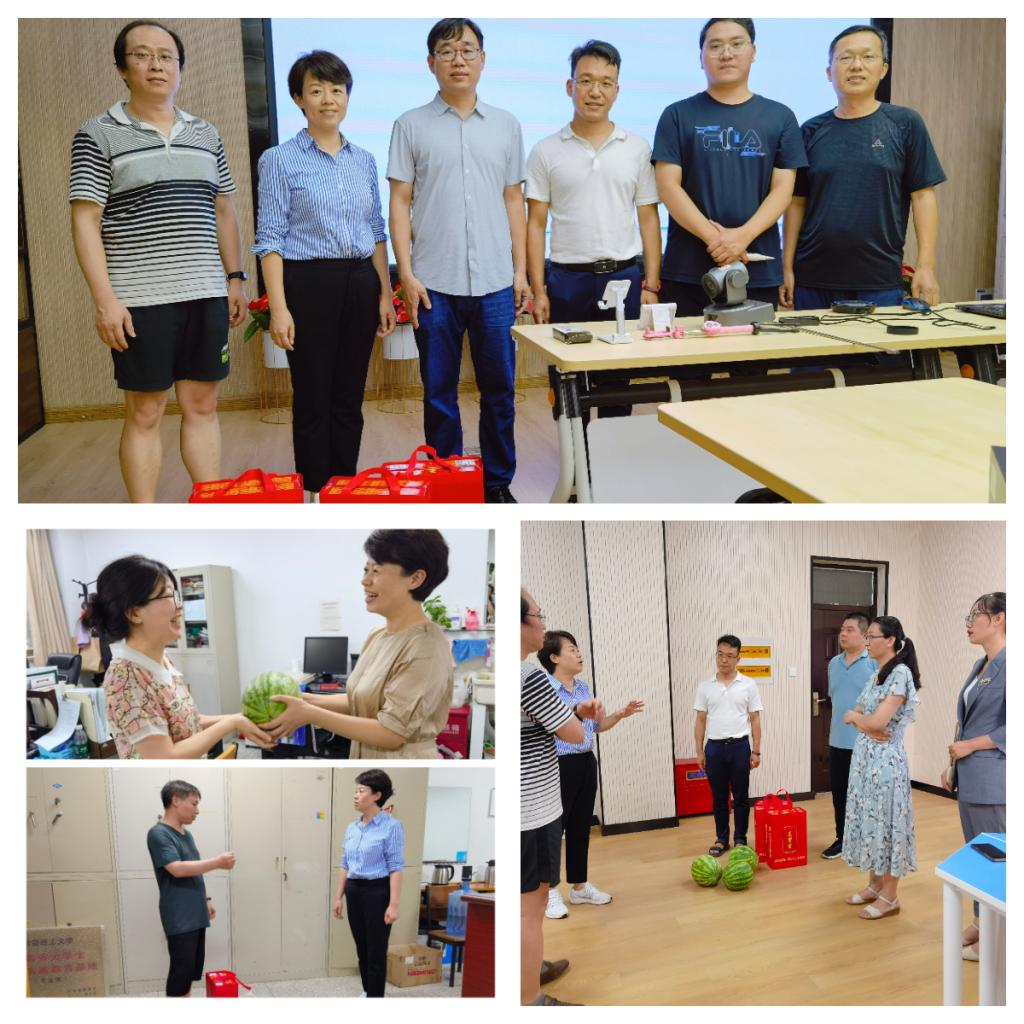 7月16日下午,测绘学院党委书记茹艳、副院长程钢和工会副主席梁翠英等,走访慰问暑期坚守工作岗位的教师们,并送上降温解暑的水果、凉茶等慰问品。