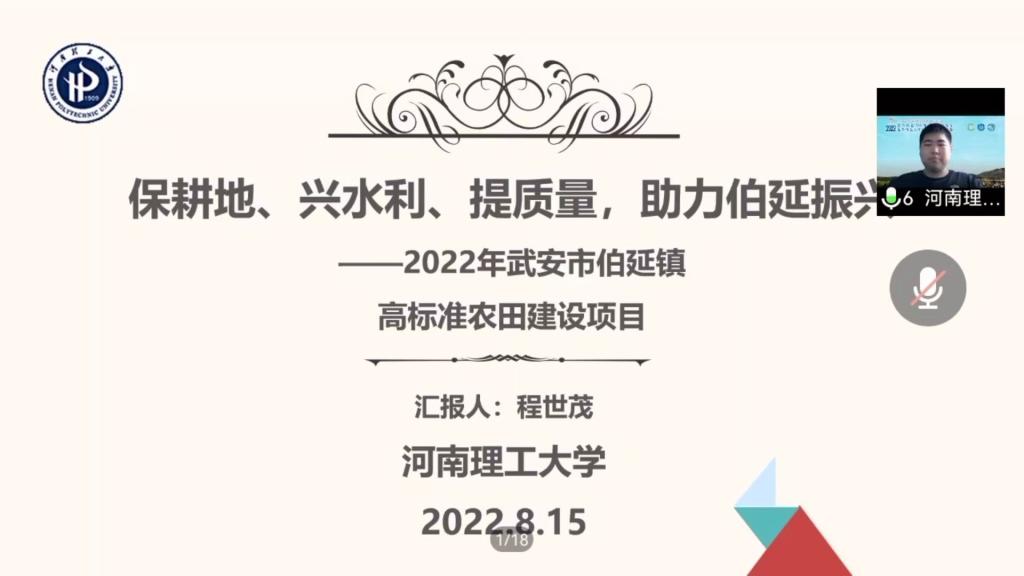 大赛自今年5月份启动以来,吸引了中国农业大学、中国地质大学、河海大学、长安大学和河南理工大学等高校参赛,最终遴选出69份作品晋级决赛。在决赛环节,由我校专业教师傅建春指导,土管系19级学生程世茂、王虎、谭佳乐组成的队伍,围绕《保耕地、兴水利、提质量,助力伯延振兴——2022年武安市伯延镇高标准农田建设项目》;由朱帅蒙、王宇共同指导,土管系20级学生刘向阳、秦璐、赵淑贤、赵钰铎组成的队伍,围绕《拥万亩良田,饮一池碧水,幸福美丽新乡村——信阳市浉河区4个村土地整治》报告内容,经线上作品汇报、专家质疑等环节的激烈角逐,最终分别荣获二等奖和三等奖。