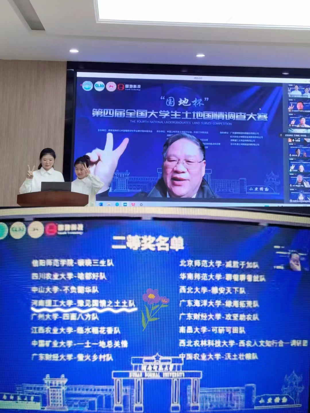 11月26日,由教育部高校公共管理类学科专业教学指导委员会主办,中国土地学会土地经济分会、科普工作委员会、湖南师范大学承办,广东国地规划科技股份有限公司协办的“第四届全国大学生土地国情调查大赛”在湖南长沙顺利举行并圆满落幕,我校代表队荣获二等奖。