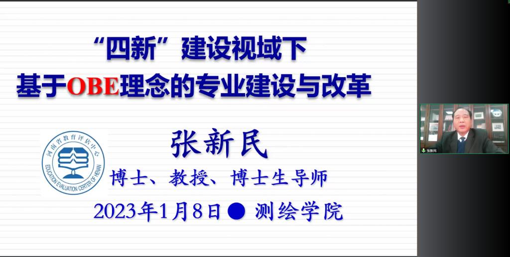 为进一步提升学院教师教育教学与科研水平、加强师资队伍建设,1月7日至8日,测绘学院线上组织开展了2023年寒假教师培训,全体院领导和教职工了参加培训。