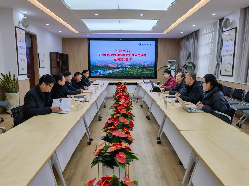 会上,邹友峰对北京四维远见信息技术有限公司领导的到访表示热烈欢迎,并简要介绍了学校近年来发展情况,希望双方发挥各自资源优势,合力发展、实现校企共赢。接着,柴华彬介绍了学院发展历程、专业设置、人才培养、科学研究、“双一流”建设等情况。随后,刘宗杰对学院热情接待表示感谢,并介绍了北京四维远见信息技术有限公司近几年的发展情况,提出了在人才培养、科技创新、学科专业共建、设备研发等方面的合作意愿。最后,双方与会人员对校企合作的途径、形式、内容等进行了探讨,并达成初步共识。