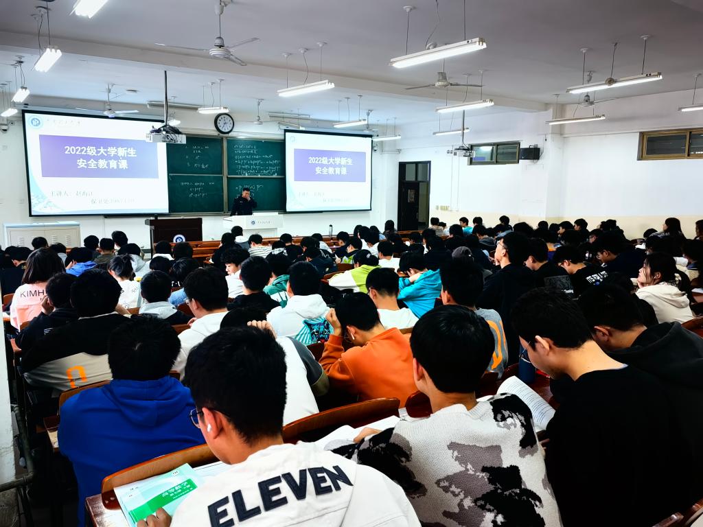 为增强新生安全意识,提高自身防范能力,保障校园安全、稳定、和谐,3月7日下午,我院邀请保卫处赵海江同志在校3102教室为新生开展安全主题教育,2022级全体学生参与报告会。