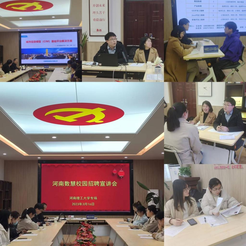 会上,宋经理首先详细介绍了河南数慧信息技术有限公司的发展情况和招聘要求,谢经理针对地理信息行业发展从行业现状,行业应用,行业前景和公司发展四个方面展开宣讲,以丰富的案例、幽默的语言及良好的互动带动宣讲活动的气氛,让更多大学生了解行业的人才发展需求以及各企业发展前景。范经理基于城市信息模型(CIM)基础平台解决方案,从建设背景,建设方案,CIM应用和数慧地理等方面向学生们做详细的介绍、分享和互动,为同学们了解企业打开了一个窗口。宣讲结束后,同学们就关心的问题积极进行提问。随后开始了简历投递和面试环节。本次宣讲的负责人认真为同学们解答,并多次强调“选择”对于大学生的重要性,希望同学们都能找到自我实现的价值与目标,并为之而努力奋斗。