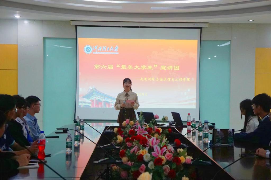 少年自有凌云志,不负黄河万古流。为全面落实“立德树人”根本任务,大力弘扬锐意进取、勇攀高峰的精神,充分发挥青年大学生先进典型的示范带动和价值引领作用,5月9日晚,测绘学院诚邀学校第六届“最美大学生”宣讲团成员在学院一楼会议室进行校内第五次宣讲。测绘学院百余名学生聆听了宣讲会。