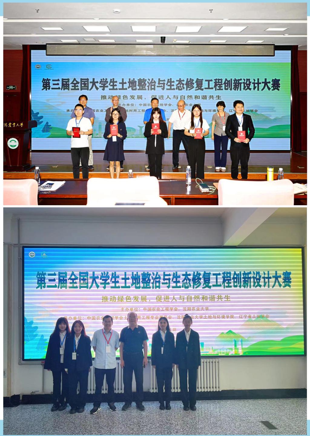 2023年9月1日,由中国农业工程学会主办,沈阳农业大学土地与环境学院承办的第三届全国大学生土地整治与生态修复工程创新设计大赛决赛在沈阳举行并圆满落幕,我院土地资源管理系组成的两支代表队荣获特等奖和二等奖各一项。