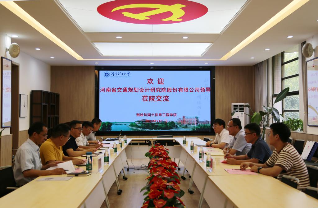 9月1日上午,河南省交通规划设计研究院股份有限公司工程测绘与地理信息研究院院长马捷、副院长王鹏、李治等一行4人莅院进行合作交流。测绘学院院长袁占良、各系室主任参加会议。会议由袁占良主持。