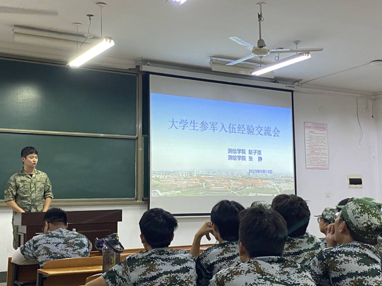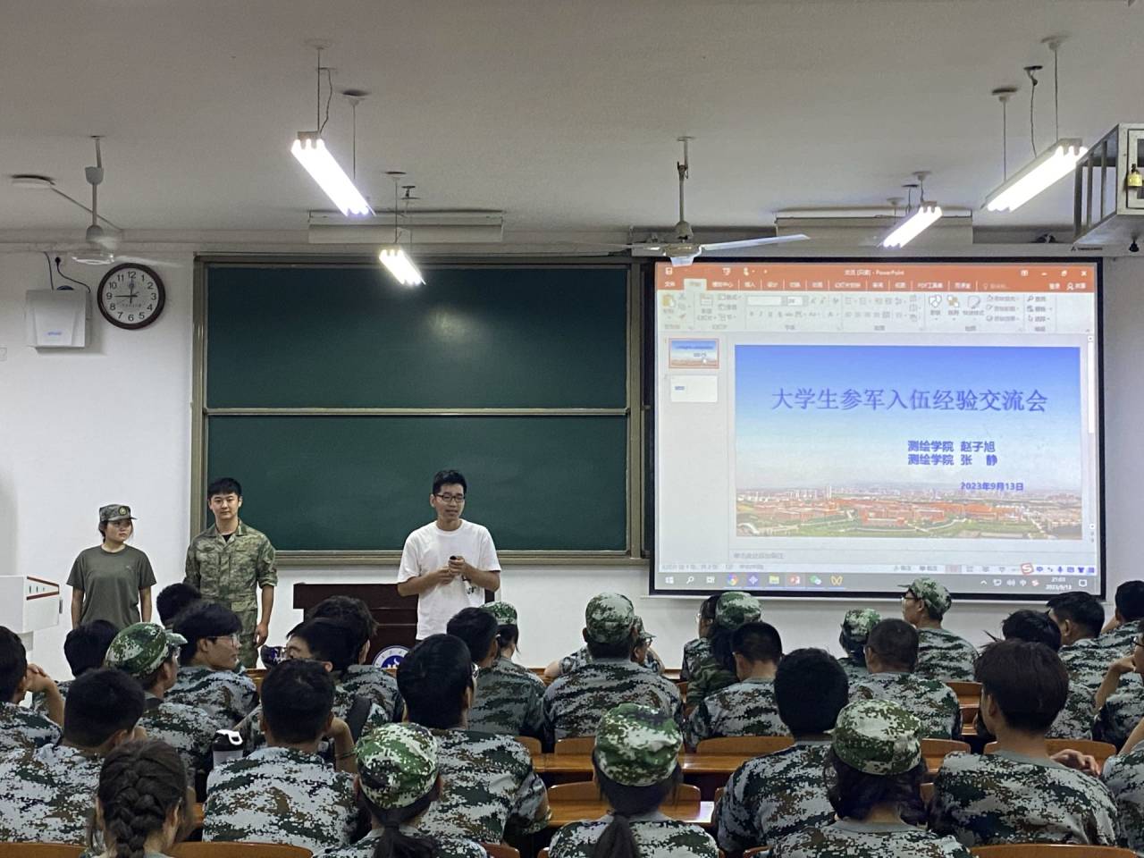 为拓宽学生视野做好职业规划,并响应国家号召,鼓励大学生积极应征入伍,推进国防和军队现代化建设。测绘学院测绘工程(导航方向)2023级1班和2班以及测绘工程2021级3班和4班,于9月13号晚上在三号教学楼3306教室召开大学生参军入伍经验交流会。会议邀请了曾在中国人民解放军空军和火箭军参军入伍的赵子旭、张静同志,分享了他们的参军经历和收获。