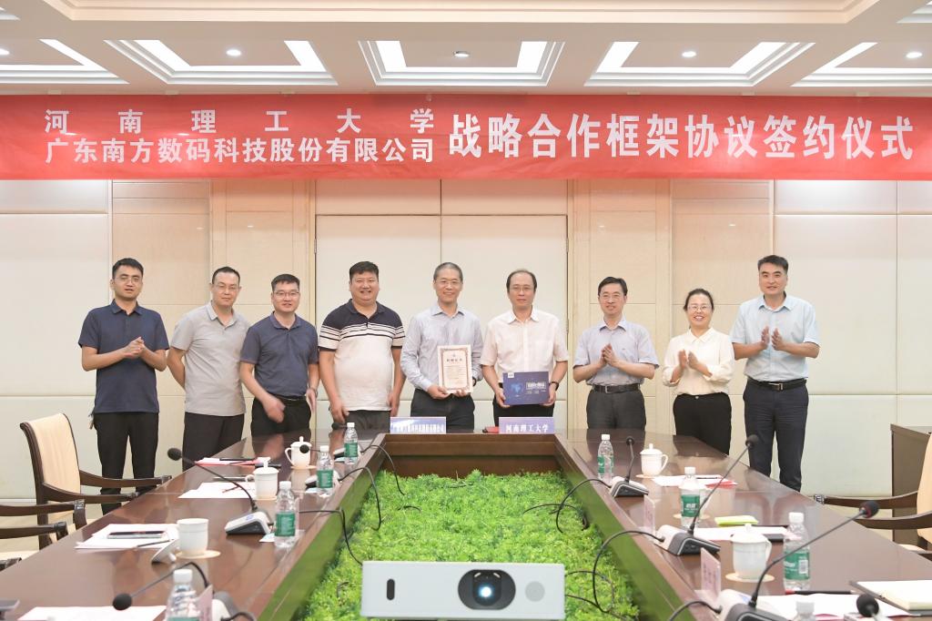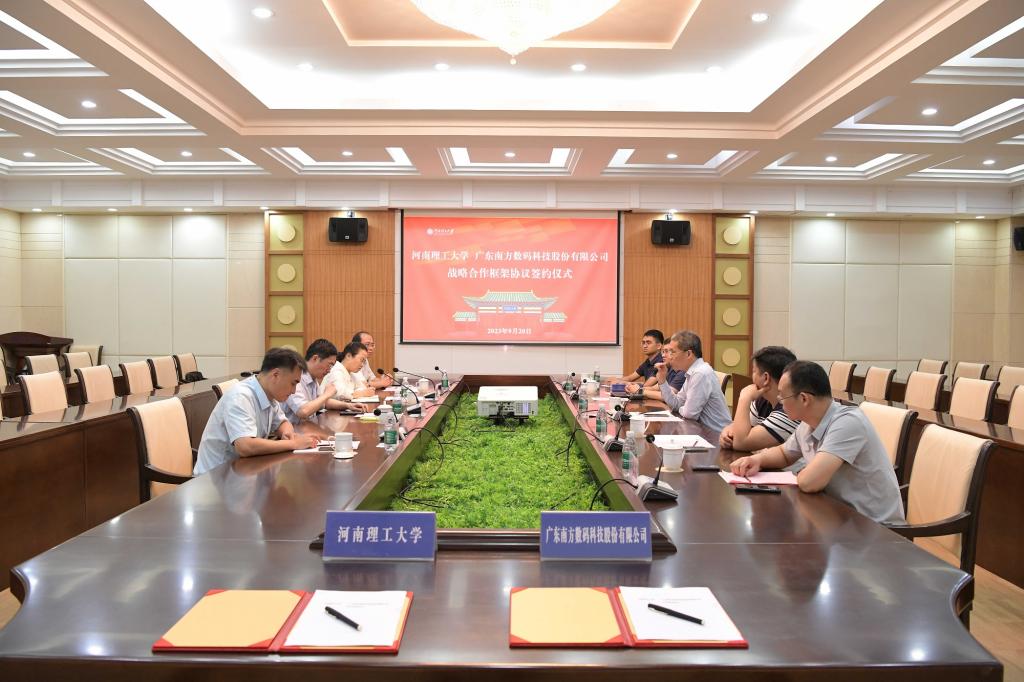 为进一步深化产教融合,提高我校测绘地理信息领域人才培养质量,9月20日下午,我校与广东南方数码科技股份有限公司在力行楼方形会议室举行战略合作框架协议签署仪式,我校学术副校长金双根,测绘学院党委书记张红霞、党委副书记郭学鹏、副院长程钢,以及南方数码常务副总经理王洪飞等一行参加。会议由张红霞主持。