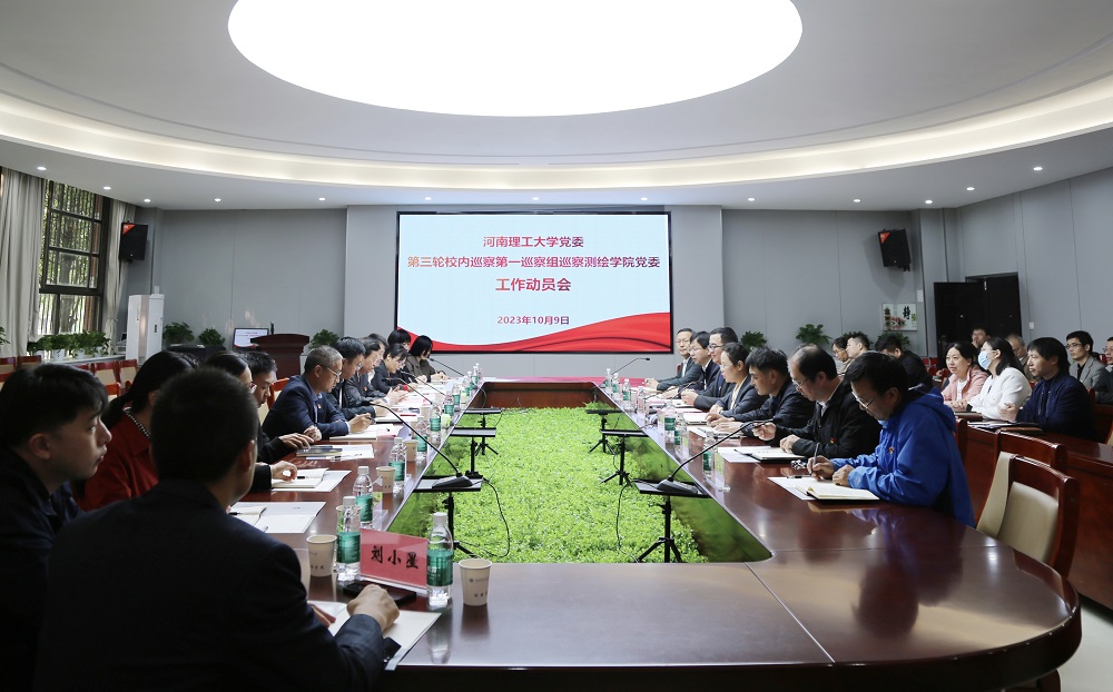 10月9日上午,校党委第一巡察组巡察测绘学院党委工作动员会在测绘学院楼101会议室召开。校纪委副书记李照修,校党委第一巡察组组长徐亚富,副组长黄峰、李伟亮及巡察组全体成员出席会议;测绘学院领导班子成员、近三年退出领导岗位的领导班子成员、党委委员、教工支部书记、系(所、室、中心等)负责人、学科带头人、教授代表、党外代表人士、师生代表、离退休人员代表等参加会议。会议由测绘学院党委书记张红霞主持。