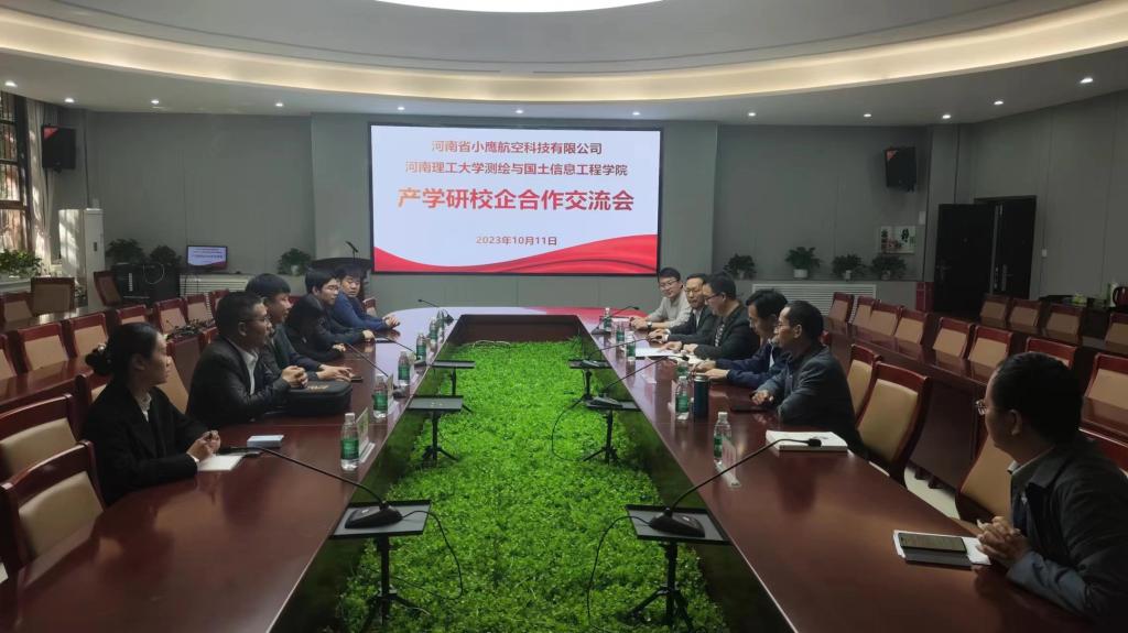 10月11日上午,河南省小鹰航空科技有限公司李万亮总经理等一行六人受邀访问测绘学院,在学院一楼会议室举行产学研合作交流会暨签约仪式。学院院长袁占良、副院长柴华彬、李克昭、何荣以及测量工程系李长春教授等相关教师参加交流,会议由测量工程系主任连增增主持。 会上,袁占良代表学院对小鹰航空一行的来访表示欢迎,对测绘学院发展现状和双一流建设情况进行了详细的介绍,希望双方顺利合作,共同推动校企共赢发展,共同推进无人机技术创新和应用,为学院建设和社会发展做出贡献。 之后,李万亮详细介绍了小鹰航空科技有限公司的发展历程、业务领域和技术能力等方面,并着重阐述了公司未来的发展方向和战略目标,希望通过产学研合作的方式,解决高校需求,推动无人机关键技术突破。小鹰航空校区主管乔峰则介绍了小鹰航空与学校合作的情况,展示了小鹰航空的几款无人机产品,技术主管魏传经进行了编队飞行和穿越机演示,展示现代无人机科技的强大魅力。 随后,双方进行了深入的交流之后,双方一致认为,通过产学研合作的方式,能够有效地推动无人机技术的发展和应用,实现双方的互利共赢。最后,双方在友好和谐的氛围中签订了合作协议。 这次合作协议的签署,标志着小鹰航空科技有限公司与测绘学院的全面合作正式启动。双方将共同致力于无人机技术的研发和应用,加强人才培养和学术交流,推动产学研一体化的发展。相信在双方的共同努力下,学院双一流建设发展和无人机技术在测绘地理信息产业的应用将迎来一个崭新的阶段。