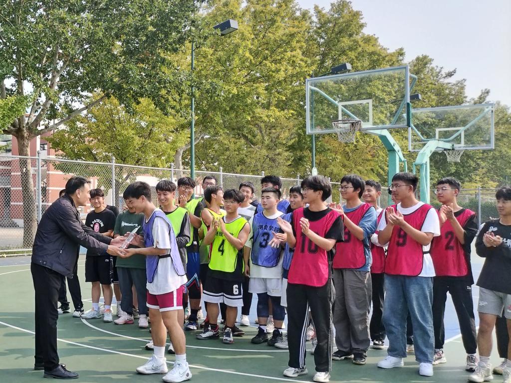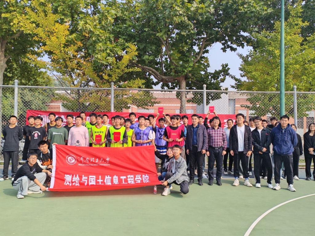 本次比赛以21个班级为参赛单位,赛制分为小组循环淘汰赛、半决赛、总决赛三个阶段。赛场上,本着“友谊第一,比赛第二”的宗旨,参赛队伍各自研究战术,团结协作,配合默契。比赛时,每位球员精神抖擞、全力投入,抢断、突破、跳投、远投、盖帽,双方队员你攻我守,不时上演精彩的配合。场下各领队运筹帷幄,巧妙布局;场边观众喝彩连连,欢呼不断。测绘学院参赛球员们高超的传球技艺、出色的反应速度、精准的起跳上篮,将赛场的氛围一次次推向高潮。经过了五天的激烈角逐,第六组拔得头筹,第一组夺得第二名,第四组获得第三名。颁奖仪式上,学院党委副书记郭学鹏、学工办主任丰习才分别为获奖队伍颁奖及合影留念,并向参赛队员们给予最温暖的鼓励,致以最热烈的祝贺。郭书记鼓励测绘学院青年学子:要百舸争流千帆竞,昂扬拼搏共逐梦。最终,由郭书记宣布河南理工大学测绘学院2023级新生篮球赛正式落下帷幕。