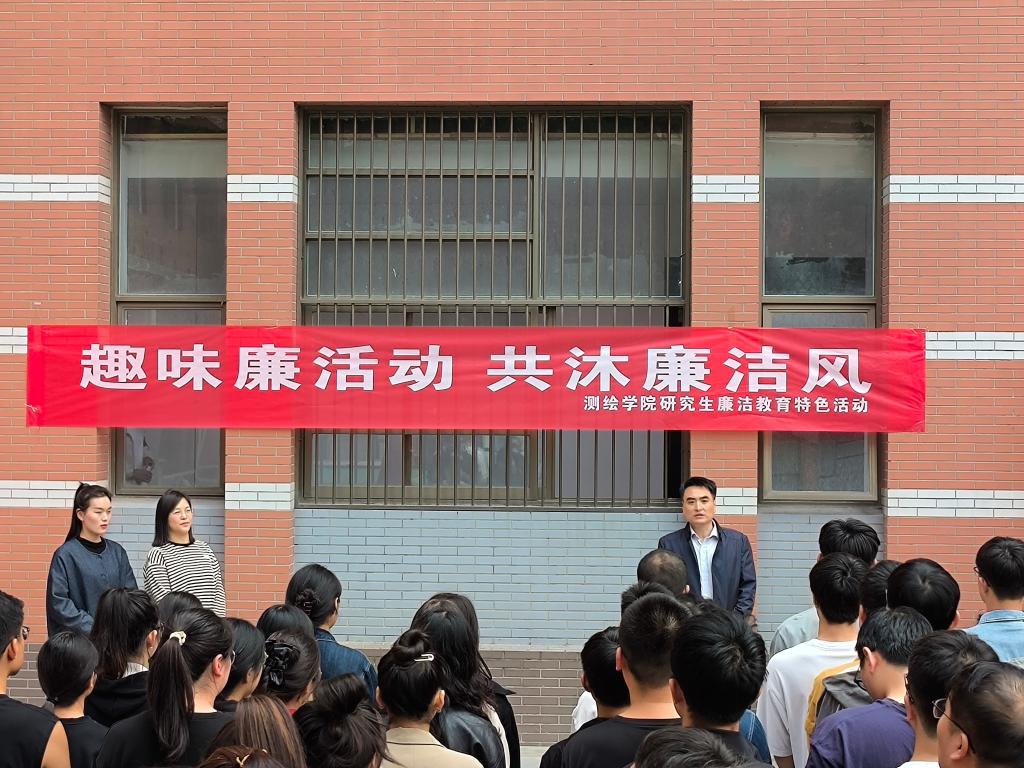 为进一步增强研究生廉洁修身意识、厚植廉洁奉公文化情怀。10月17日下午,测绘学院于院楼运动场举办了“趣味廉活动,共沐廉洁风”主题廉洁教育特色活动。学院近百名研究生参加,院党委副书记郭学鹏参加。