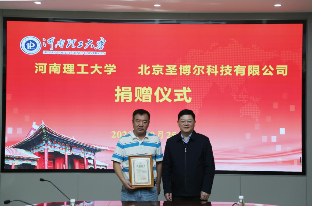 刘雁春介绍了北京圣博尔集团的主营业务、发展情况,他指出,希望以此次捐赠为契机,进一步加深双方合作,以推进技术进步为着力点,支持河南理工大学“双一流”创建,共同为推进经济社会发展做出贡献。侯坤对学校的办学历史、文化传承、人才培养等方面给予高度赞誉,他表示,测绘科学与技术是集团和学校共同的研究领域和服务面向,希望在高层次平台创建、产品研发、实习就业等方面开展合作,推进双方高质量发展。