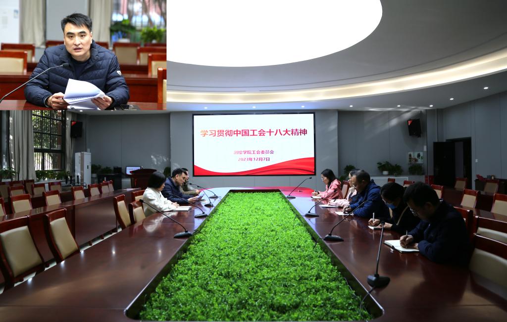 郭学鹏带领与会人员认真学习了《河南理工大学工会委员会关于认真学习宣传贯彻中国工会十八大精神的通知》和《河南理工大学工会工作先进集体和先进个人评选办法(修订)》文件精神。他讲到,中国工会第十八次全国代表大会是在我国迈上全面建设社会主义现代化国家新征程、向第二个百年奋斗目标进军的关键时刻召开的一次十分重要的大会,意义重大而深远。院工会要第一时间抓好中国工会十八大精神学习宣传贯彻工作,以大会精神为指导,忠诚党的事业,竭诚服务教职工,推动学院工会工作取得新成效、再上新台阶。