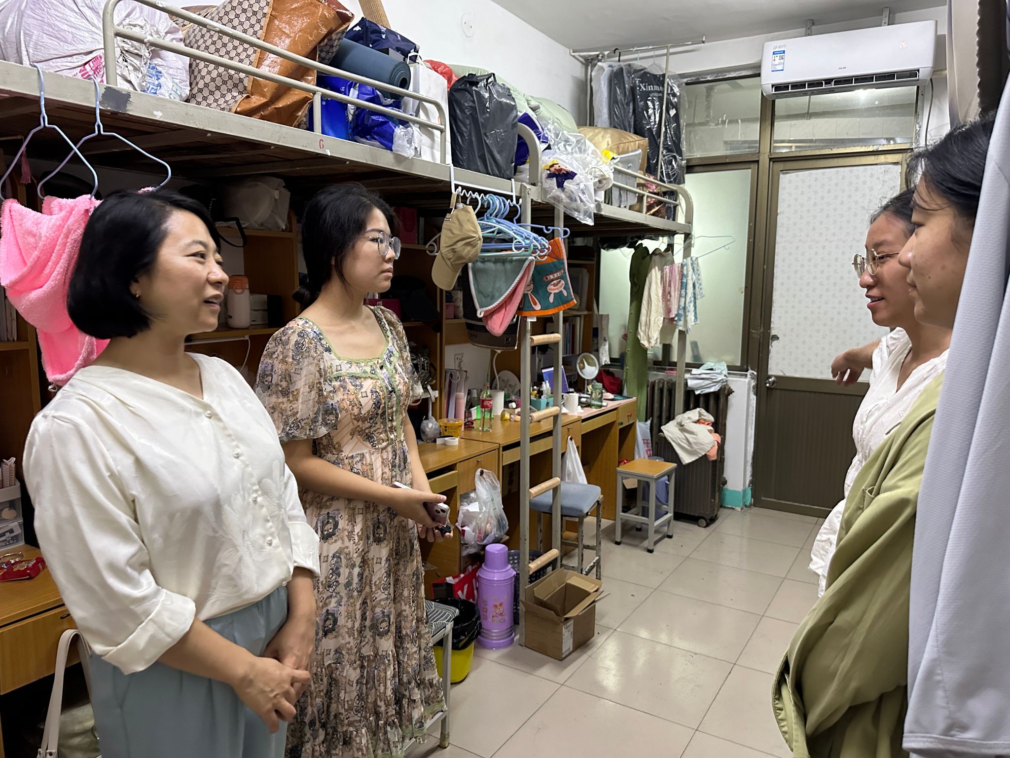 老师们仔细地走访了每一间学院研究生宿舍,排查宿舍是否存在安全隐患,了解他们返校报到的情况,对暂时还未返校报到的学生名单作了摸排统计,确保学生全部安全返校做好准备。走访过程中,王雷霞副书记认真询问了研究生们学习、科研工作的进展,叮嘱大家如果有困难一定要及时和老师联系,学院会努力解决大家遇到的问题和困难,帮助大家更好地迎接新学期的到来。此外,老师们还分享一些就业和求职的理念、经验,并对大家提出的考编问题,作了详细解答。