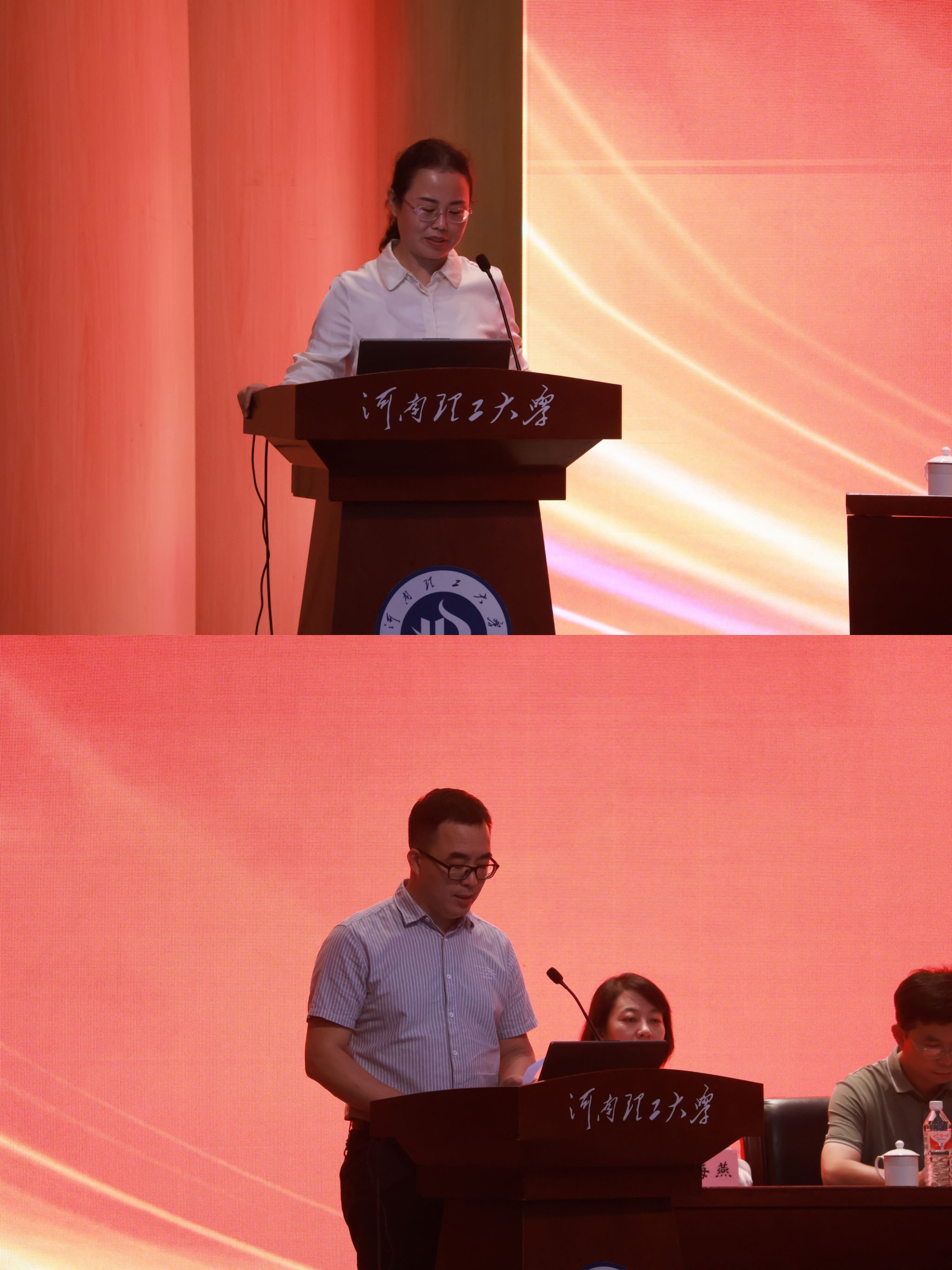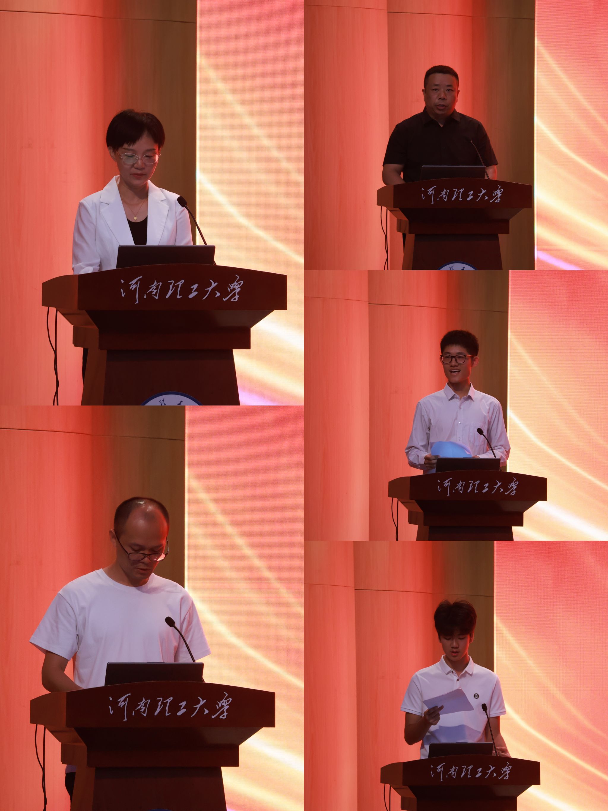 地理信息科学系杜久升老师作为教师代表发言。她送给广大新生三点建议:一是志存高远、不畏艰难、勇攀高峰。二是坚定理想、惜时如金。三是劳逸结合、张弛有度。河南冰测科技有限公司刘炎冰作为优秀校友代表上台发言。他回顾了自己在母校求学时的难忘时光,同时也给新生分享了自己的创业经历,给同学们带来了许多经验与启发。新生家长代表於建峰在发言中说大学是人生的新起点、新篇章,希望同学们能够在测绘学院有所作为、一展宏图,家长将永远做同学们坚实的后盾。