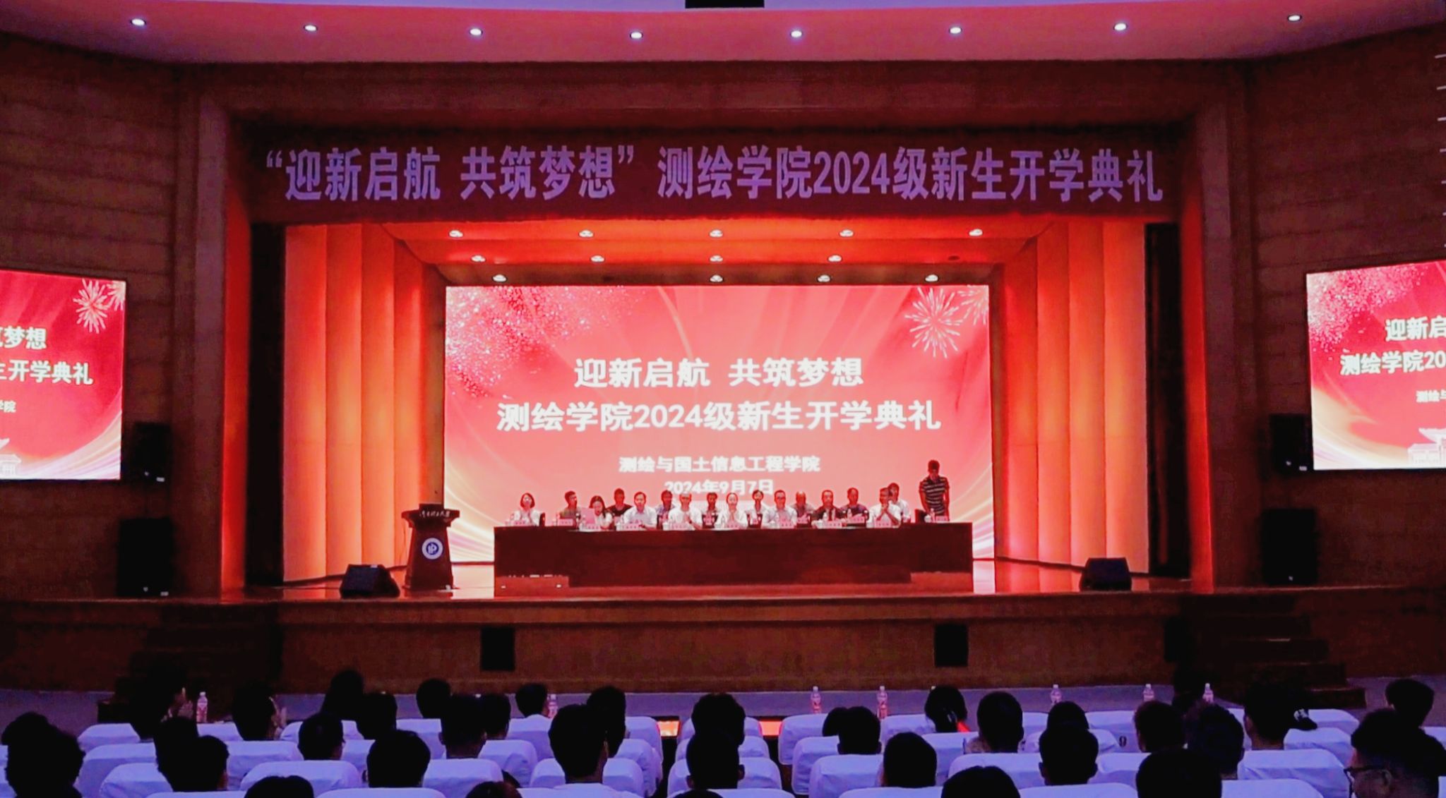 丹桂飘香金秋至,测绘学子起新航。9月7日上午8点,在明德楼音乐厅,测绘学院2024年新生开学典礼隆重举行。测绘学院党委书记张红霞、院长袁占良等学院领导、校友代表刘炎冰、家长代表於建峰及各系主任、新生辅导员、班主任和2024级全体新生参加了典礼,典礼由院党委副书记王雷霞主持。