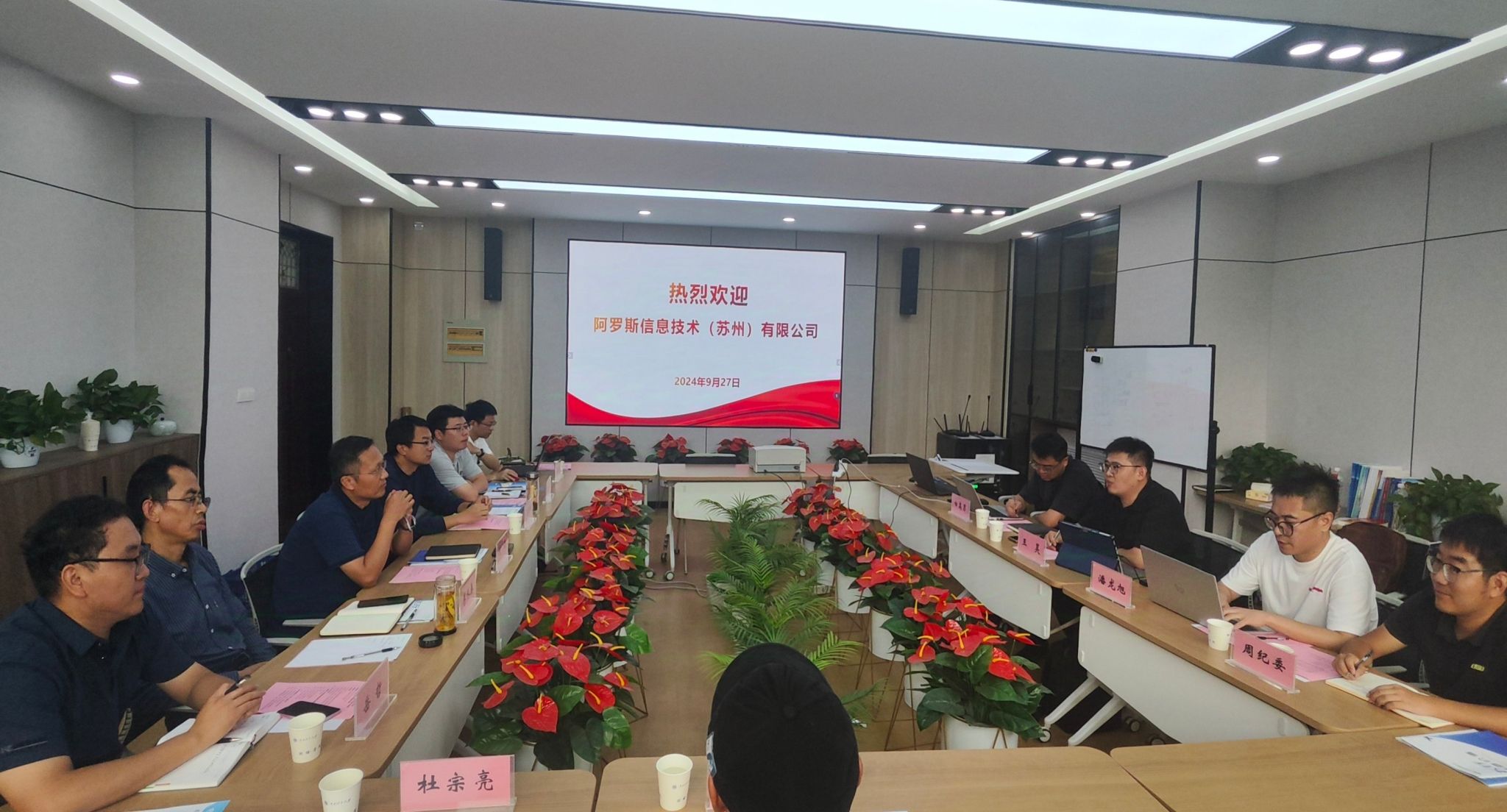 会上,何荣首先对阿罗斯公司一行的到来表示欢迎,随后介绍了学院的专业特色、人才培养以及一流学科创建方面的成就。王昊介绍了阿罗斯信息技术(苏州)有限公司的基本情况,阿罗斯西安分公司总经理白高男介绍了公司目前业务范围和相关产品研发。双方在无人机联合研发实验室、“产教研”融合、人才培养、校企合作等方面开展深入交流与探讨,并达成多项共识。