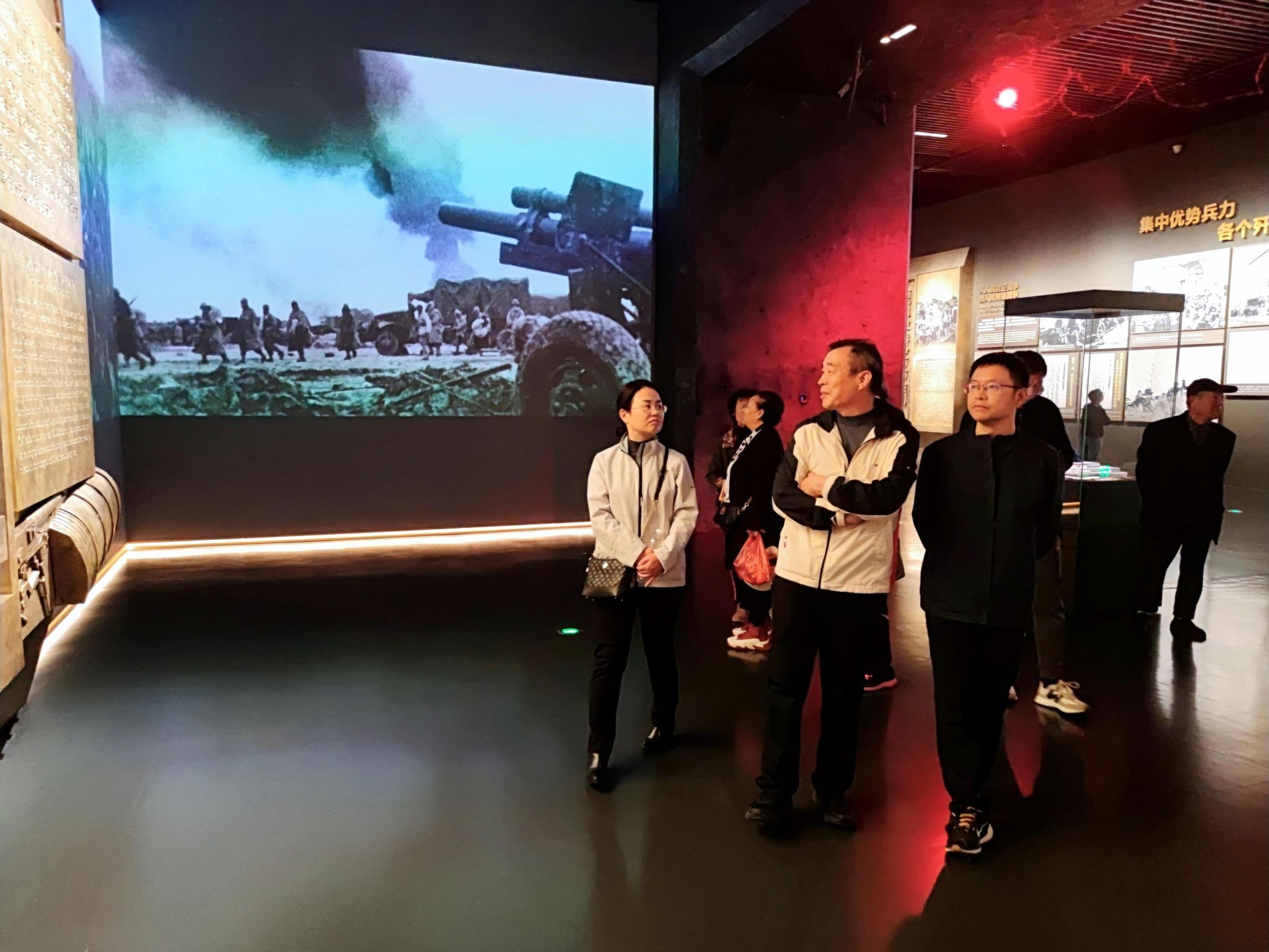 淮海战役纪念馆分前厅、序言厅、战役厅、支前厅、烈士厅、后厅六部分,共展出1000余幅历史照片、2000余件革命文物,全面展示淮海战役胜利进程、革命前辈丰功伟绩和人民支前的宏伟画卷,是全国爱国主义教育基地、全国爱国主义教育示范基地。在纪念馆的各个展厅,大家通过看文物、读文字,全面了解了70多年前那场伟大的战役,对革命先辈的丰功伟绩有了更加深刻的认识,对“一切为了人民、一切依靠人民,从群众中来、到群众中去”有了更为透彻的体会。