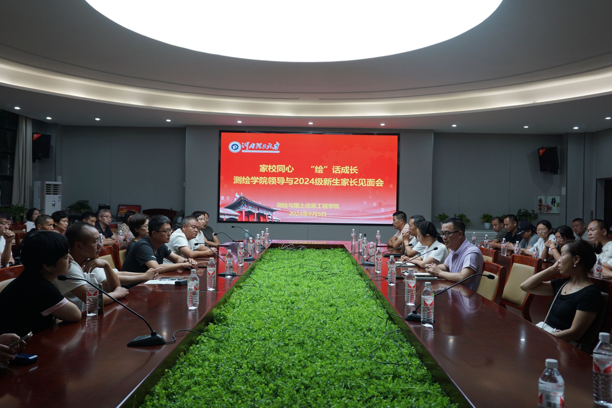 家校协同,共话成长。又是一年报到季。为加强家校合作,凝聚育人合力,全方位服务学生成长成才。测绘学院新生家长见面会于9月6日下午在学院一楼会议室召开,院党委书记张红霞、院长袁占良、副书记王雷霞、副院长何荣以及2024级辅导员和班主任出席会议,部分新生家长和新生代表参加了见面会。会议由党委书记张红霞主持。