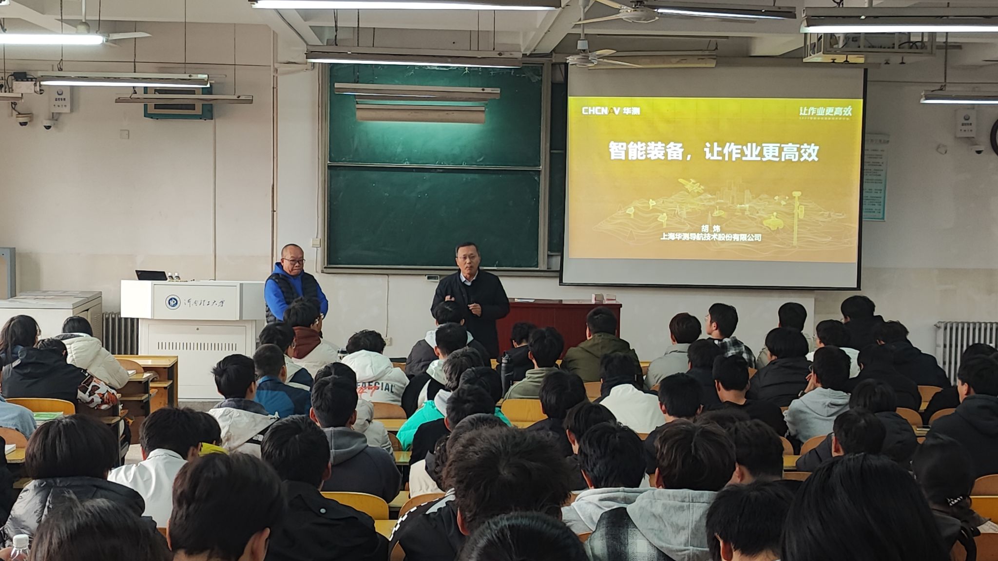 12月10日下午,上海华测导航技术股份有限公司副总裁胡炜受邀莅临我校,为测绘与国土信息工程学院2024级新生举办了一场题为“智能装备,让作业更高效”的学术讲座。本次讲座由何荣副院长主持。