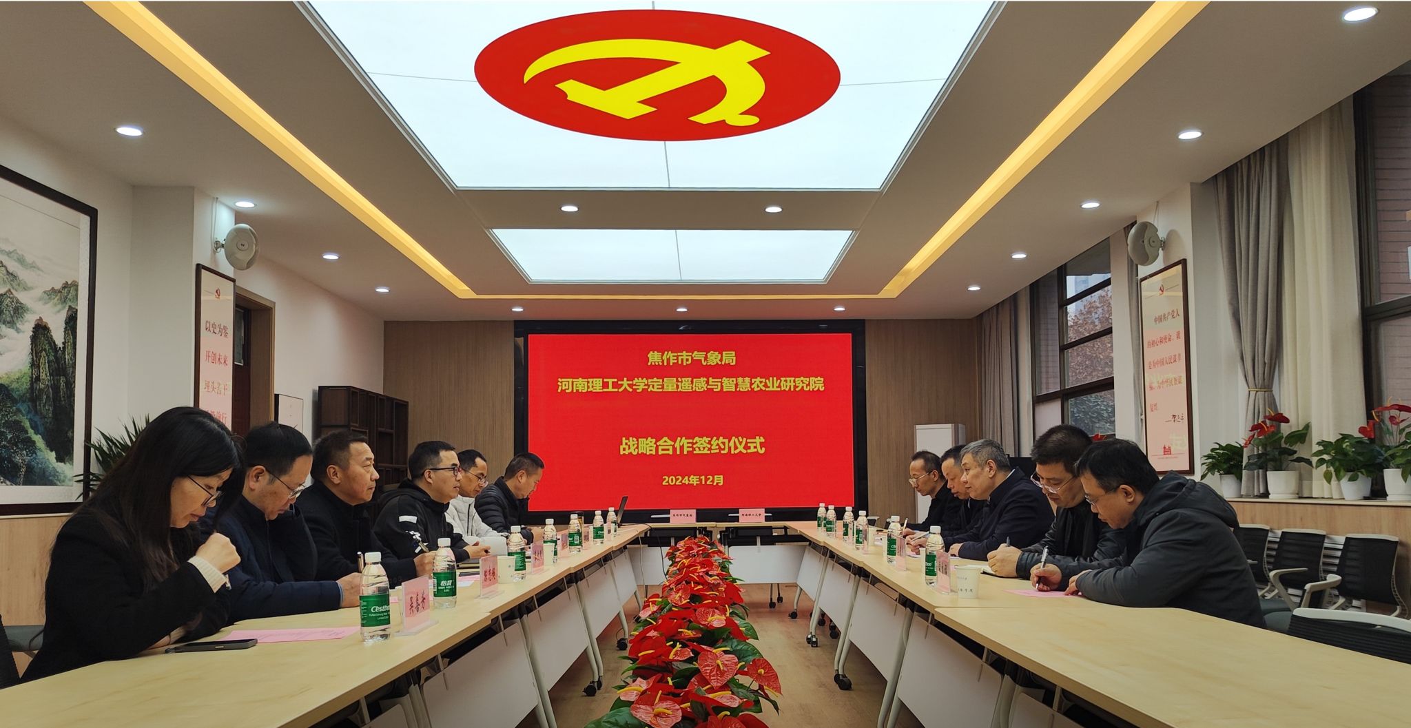 12月11日上午,河南理工大学定量遥感与智慧农业研究院与焦作市气象局战略合作协议签约仪式在河南理工大学测绘与国土信息工程学院221会议室举行。测绘学院院长袁占良、焦作市气象局局长徐传玺等双方有关同志出席签约仪式,会议由李长春教授主持。