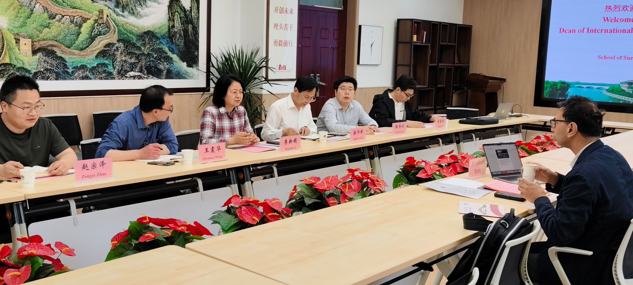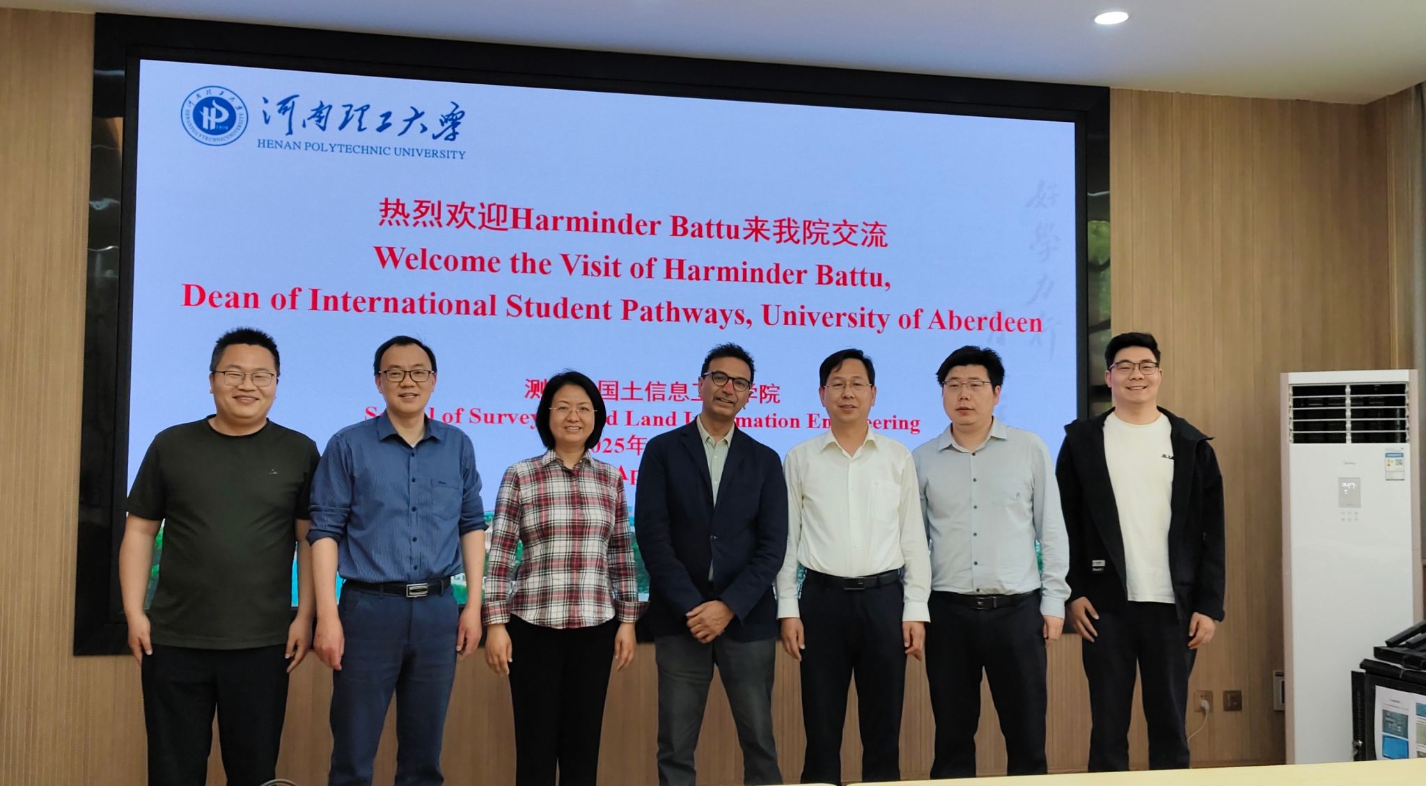 李新娟处长以及柴华彬副院长对Harminder Battu博士的到来表示热烈欢迎。双方互相对参与人员进行介绍,并观看了河南理工大学宣传片。随后对学术、文化、人员交流等合作进行了深入讨论。Harminder Battu博士介绍了阿伯丁大学的校园环境、留学生入学条件、遥感专业设置及人才培养等情况,希望在学生交流、教师互访和学术研究等方面长期合作。李新娟处长介绍了我校中外合作办学、国际学生交流、学生交换以及赴国外攻读学位等相关政策,柴华彬副院长对我院专业设置、师资建设、人才培养等情况作了介绍,希望双方在学生和师资交流方面深入合作。