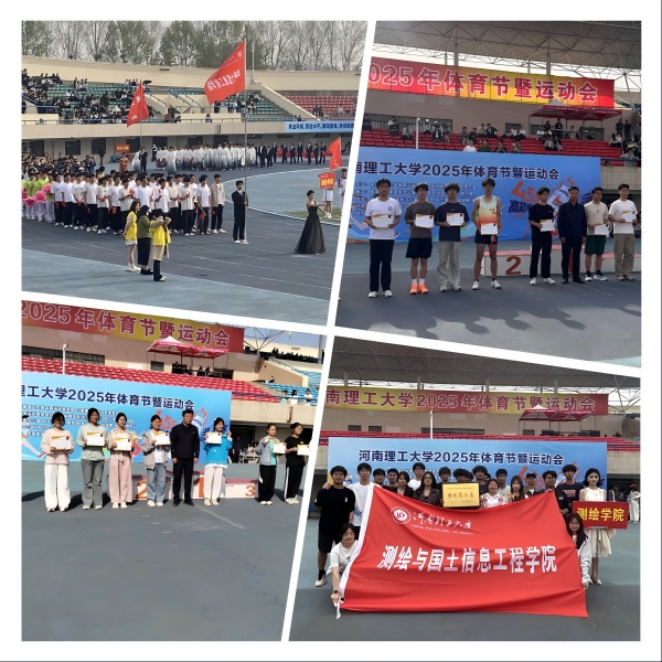 4月11日,我校2025年体育节暨运动会在全校师生的欢呼与掌声中圆满落下帷幕。测绘的学子在赛场上化身无畏勇士,以满腔的热忱和昂扬的斗志,突破自我,斩获学生团体第二名的佳绩,成为校园里一道亮丽的风景线。