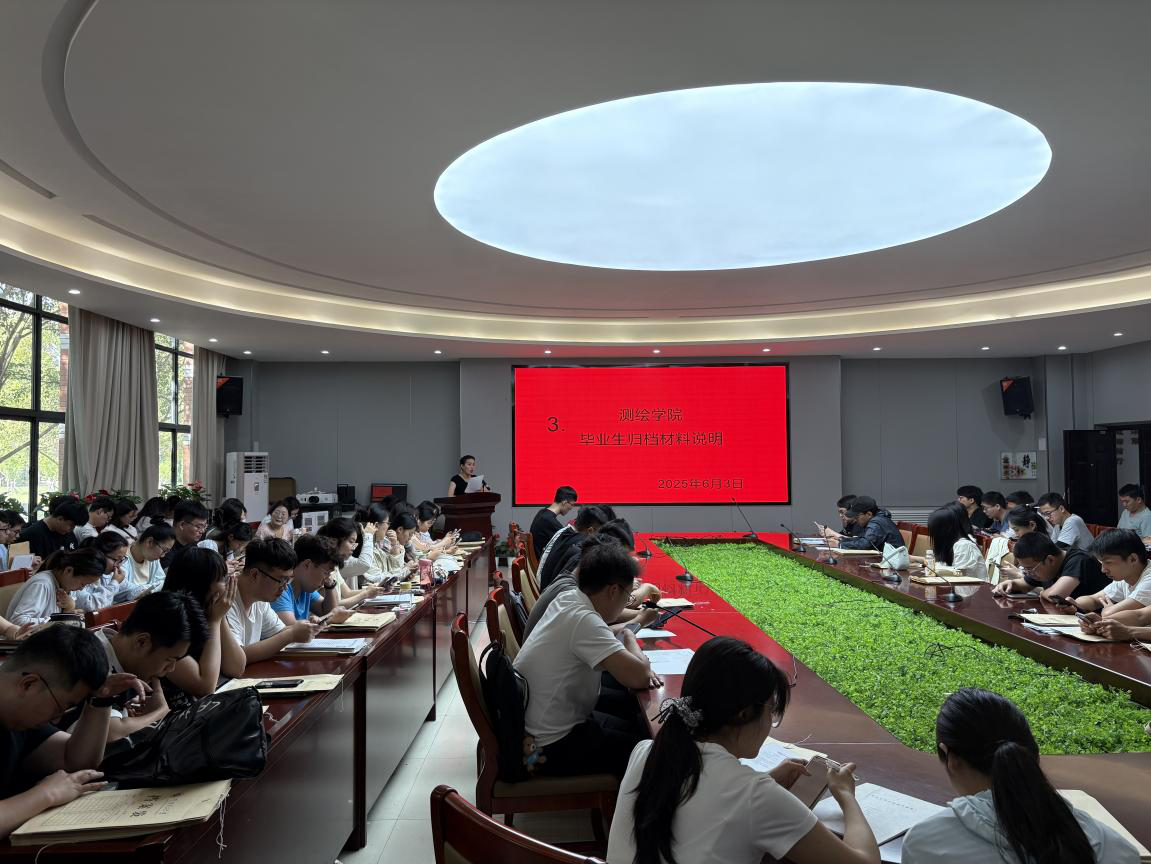 6月3日上午,测绘学院在 101会议室召开 2025 届研究生毕业生离校会议暨归档整理工作说明会。测绘学院研管办秘书王宇、研究生辅导员范梦瑶、刘赛思及全体2025届研究生参加了会议。