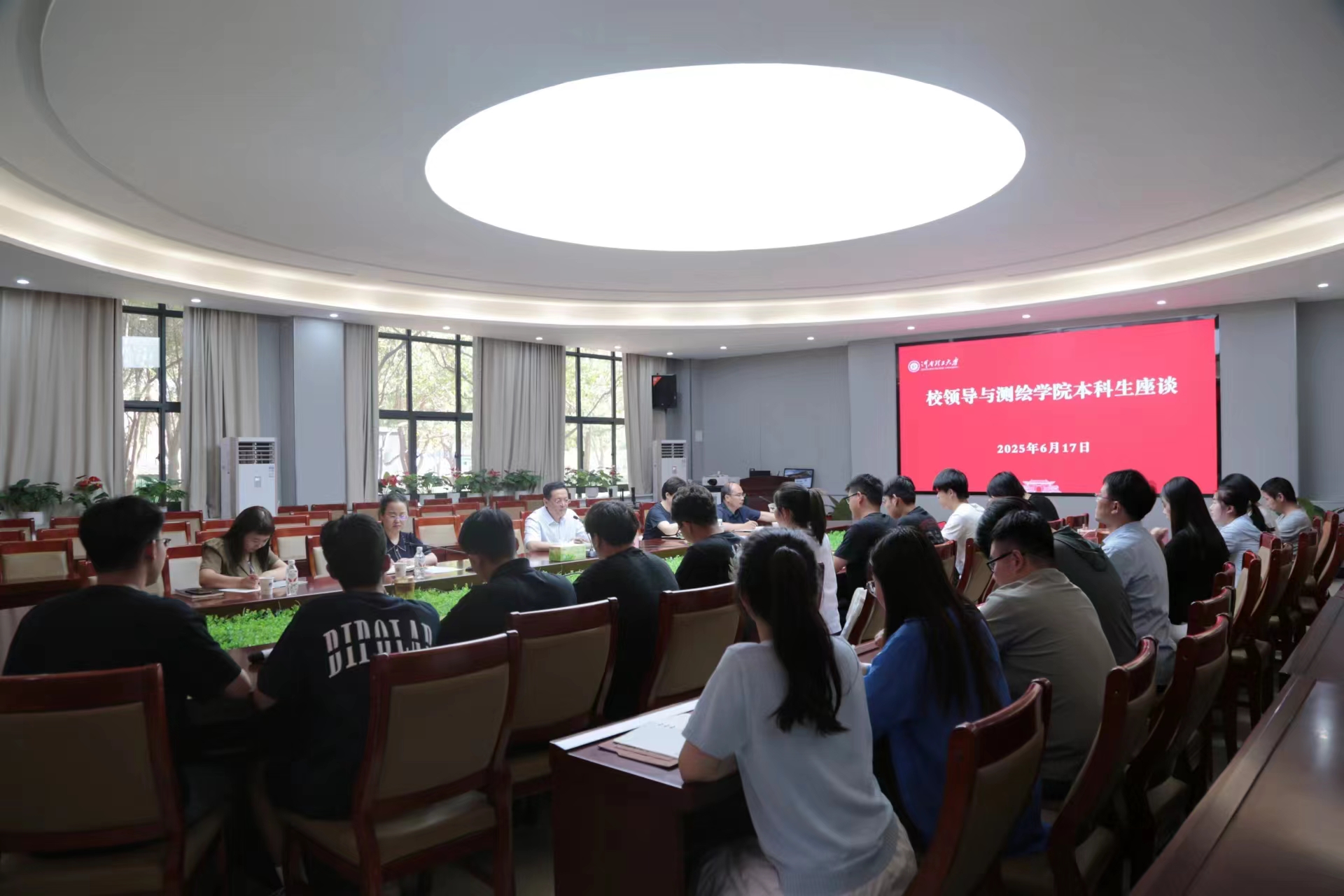 在座谈环节,学生代表围绕日常学习、班级管理、就业方向、创新创业、职业规划等问题踊跃发言。解伟认真听取了学生的问题,耐心细致地逐一解答,并结合测绘学院工作实际,提出了自己的意见建议,如,建立健全五级管理体制,实施科学有效的网格化管理;学生组织要充分发挥传帮带作用,把测绘学院“学长导师制”“党员导师制”等良好做法传承下去;班干部要充分发挥桥梁纽带作用,做到上传下达、下情上传,等等。