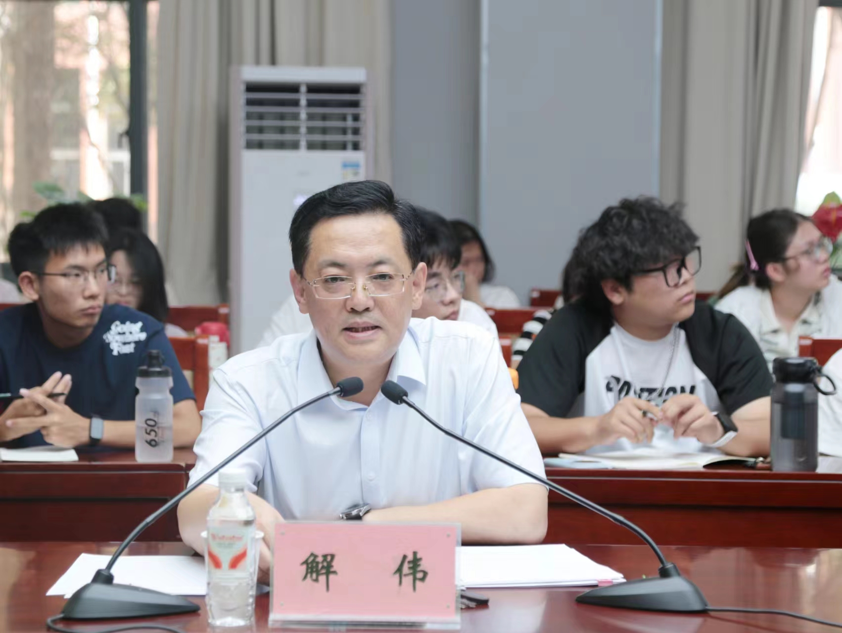6月17日下午,校党委副书记解伟在测绘学院一楼101会议室为师生带来一场主题为 “明晰就业形势,把握发展机遇,努力实现高质量充分就业”的思政课并与学生座谈。校党委常委、宣传部部长茹艳,学生工作部(处)副部(处)长赵观石及测绘学院师生代表参加。会议由测绘学院党委书记张红霞主持。