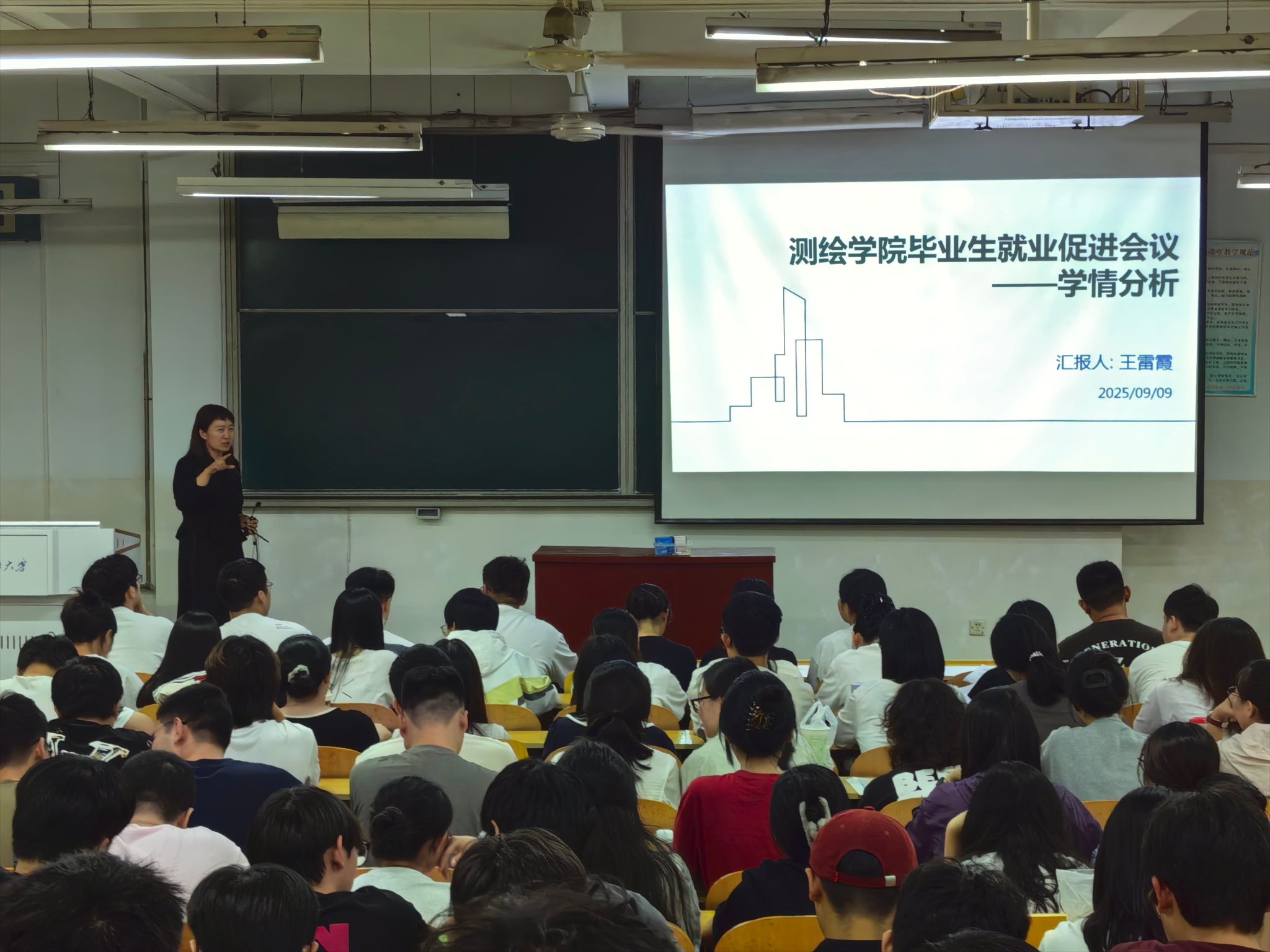 9月9日晚19:30,我院在测绘学院401教室召开2026届毕业生就业动员会。学院党委副书记王雷霞作主题报告,毕业班辅导员丰习才主持会议,大四学生参加。