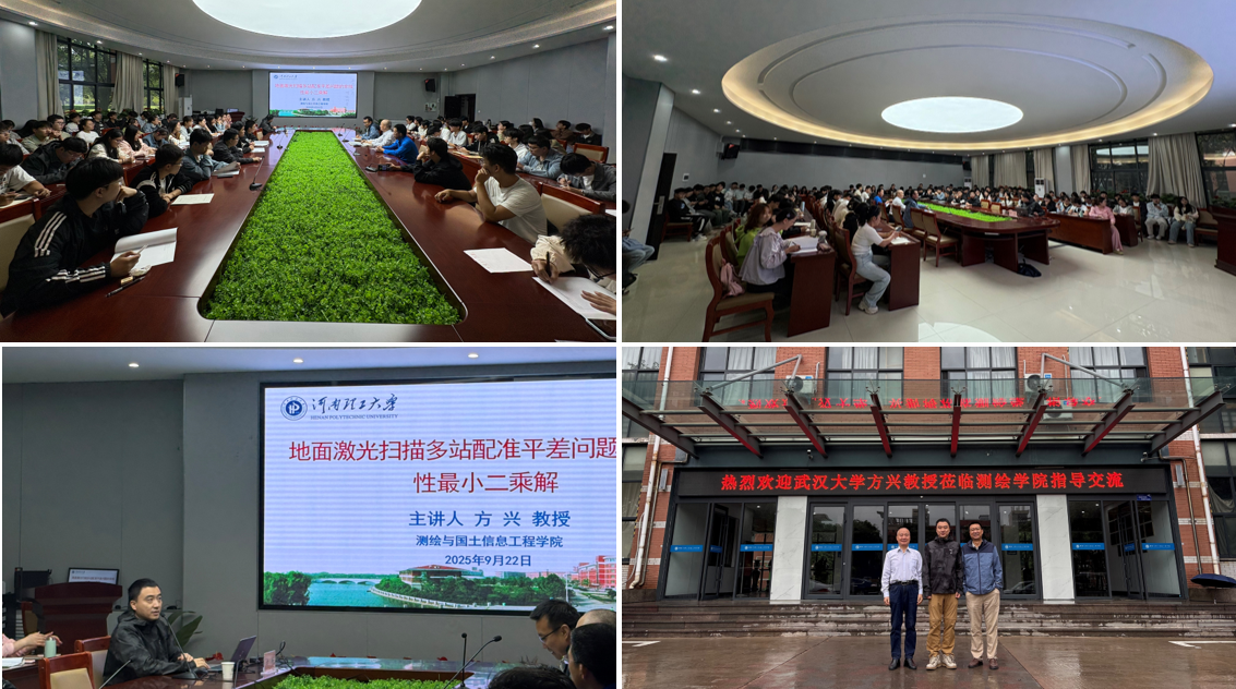 2025年9月22日上午,武汉大学测绘学院方兴教授应邀做客测绘学院,在一楼会议室作题为《地面激光扫描多站配准平差问题的非线性最小二乘解》的学术报告。报告由学院副院长李克昭教授主持,学院相关专业的百余名师生参加。
