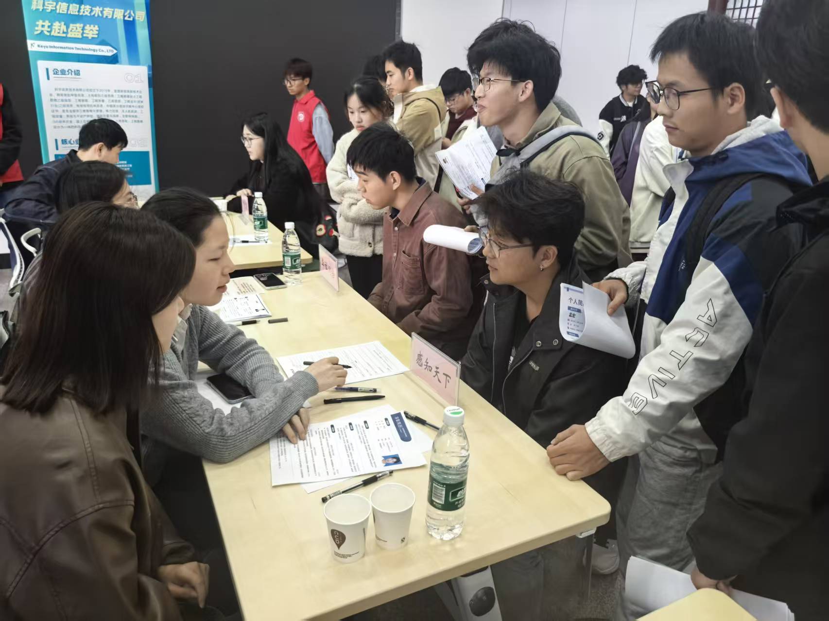 本次招聘用人单位提供的就业岗位涵盖测绘工程、遥感科学与技术、地理信息科学等相关专业,需求范围覆盖技术研发、工程测量、数据分析以及海内外工程等多个领域,与学院专业布局高度适配。招聘会现场氛围热烈,2026届毕业生们手持简历积极与用人单位代表交流,主动了解岗位要求和职业发展前景。为全面考察学生专业能力,部分企业在现场面试基础上,还专门安排了专业笔试环节,通过理论与实践相结合的方式,对学生进行“初试-笔试-面试”综合考核。