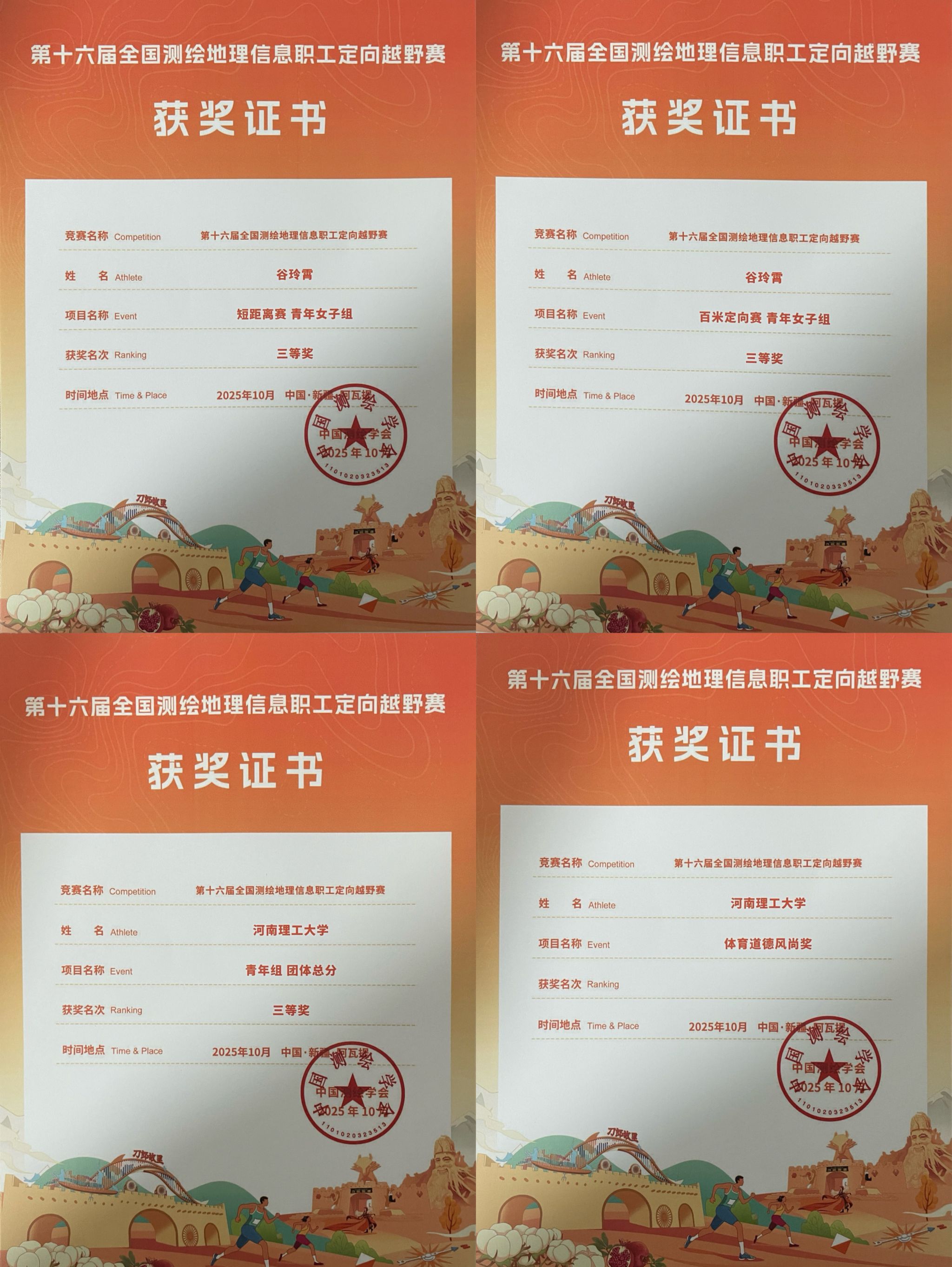 经过激烈角逐,我院谷玲霄老师荣获青年女子组短距离赛三等奖和百米定向赛三等奖。河南理工大学代表队斩获青年组团体总分三等奖,并获评体育道德风尚奖。从精准判断的定向越野到默契协作的团队比拼,运动员们以汗水生动诠释了“更快、更高、更强、更团结”的体育精神,为现场观众奉献了一场场扣人心弦的精彩赛事。