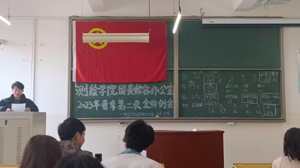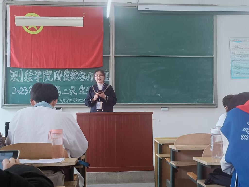 3月19日下午,测绘学院团委综合办公室2023年春季第二次全体例会在院楼302教室举行,会议由办公室王文烁主持,团委综合办公室全体成员参加会议。