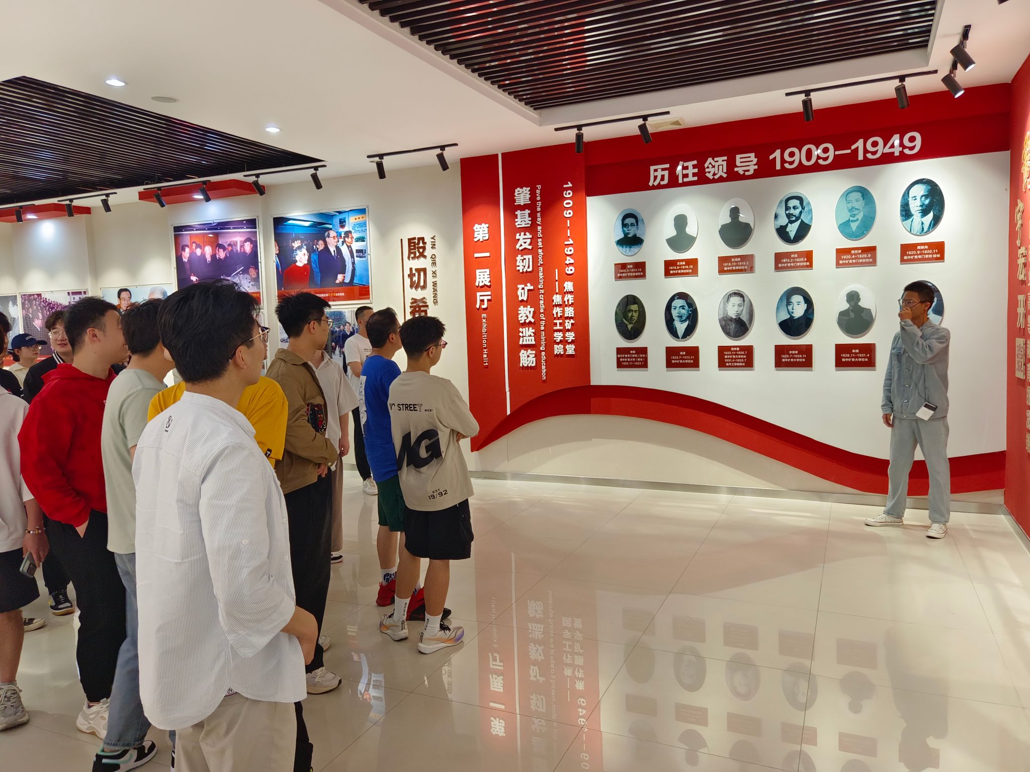 河南理工大学校史馆共分为三个展厅,第一展厅主要介绍了1949年以前的校史,学校前身为1909年成立的焦作路矿学堂,是我国第一所矿业高等学府。展厅还保存了许多老照片,记录了抗战时期辗转多地艰苦办学的历程。第二展厅主要介绍了学校自新中国成立以来到20世纪末期间,学校立足煤炭工业所取得的一系列重要成就。第三展厅主要介绍了21世纪以来学校在新校区建设、学科建设、学位点布局以及科研投入、成果产出等方面取得的成就。参观过程中,讲解员生动有趣的讲解使同学们都听得十分投入。他时不时还抛出一些关于党史、校史的提问,得到了同学们的积极回应。同学们纷纷表示,通过此次参观,大家对学校的发展历史有了更深刻地了解;对前辈们在艰苦的环境下坚持办学的精神深感钦佩,同时也意识到如今良好的求学条件来之不易,应当倍加珍惜。