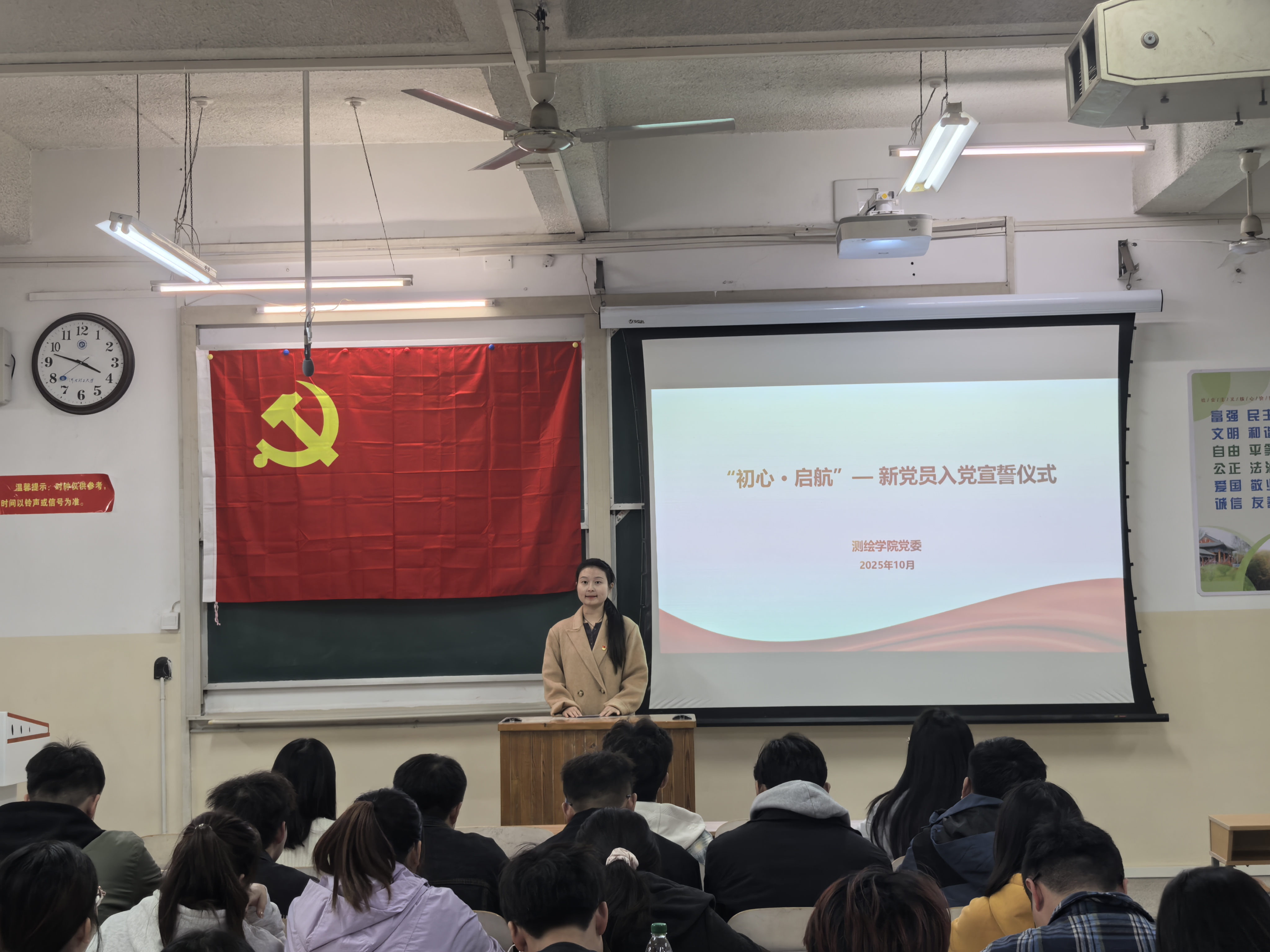 为进一步增强学生党员队伍的政治荣誉感和使命感,10月21日,测绘学院3个研究生支部在一号教学楼304室联合开展新老党员同宣誓主题党日活动。教师代表、3个研究生支部的正式党员代表及全体新发展党员参加。会议由研究生第一党支部书记秦何主持。