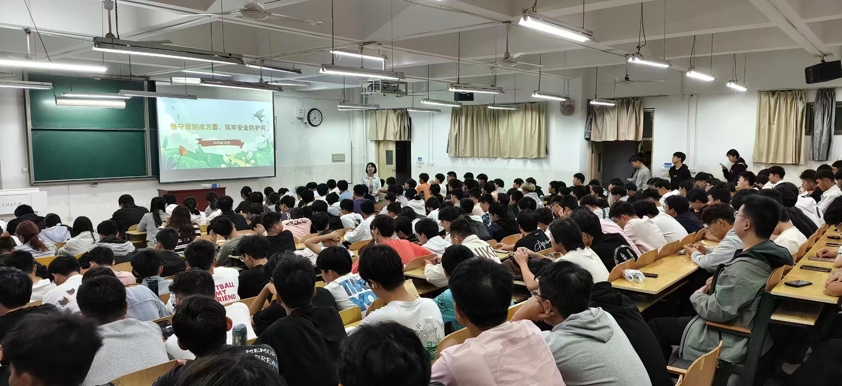 安全是校园稳定发展的根基,规矩是守护安全的底线。此次班会通过剖析宿舍火灾、交通事故、电信诈骗等典型安全案例,着重强调安全教育需兼顾行为规范与思想防线“两手抓”。各年级辅导员在讲解安全规则时强调:规矩作为保障安全的核心基石,既能引导学生树立正确的安全理念,筑牢思想层面的安全防线;又能明确日常行为操作、个人信息保护等方面的边界,织密行为层面的安全网络。此次主题班会活动旨在使学生们深刻认识到,唯有思想上认同规则、行动上践行规则,才能实现安全的双重保障。