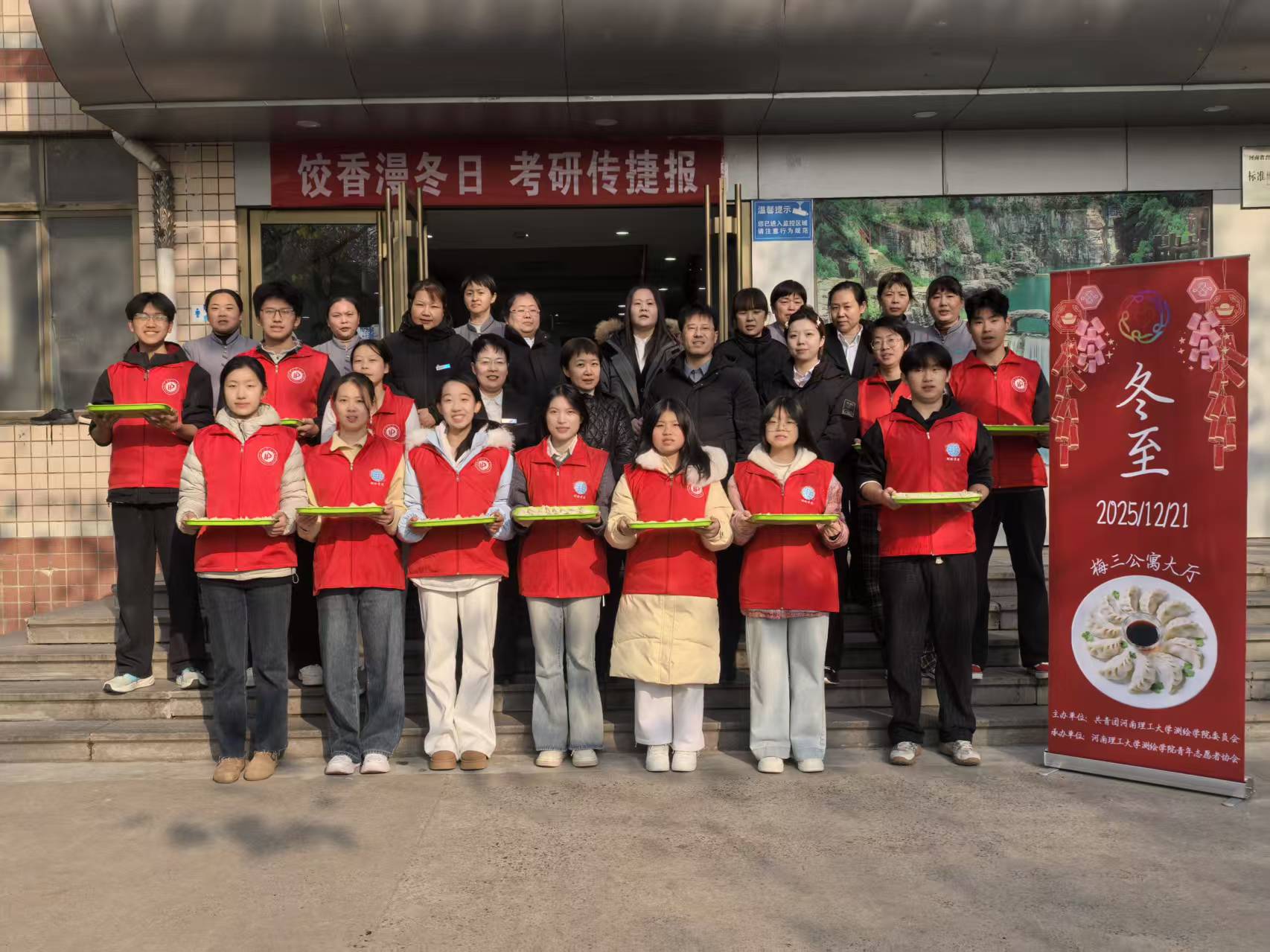 冬至热饺驱冬寒,笔耕不辍待梦圆。为了在校园中传递延续千年的时令温情,以及为每一位正执笔为剑、静待破晓的考研人送上真挚的陪伴与祝愿,12月19日,河南理工大学测绘学院青年志愿者协会在梅园三号宿舍楼大厅举行了冬至包饺子活动。以饺子为情感寄托,驱散寒意、凝聚情谊,让这份热气腾腾的关怀,助力考研学子在追梦的航程中蓄力前行。