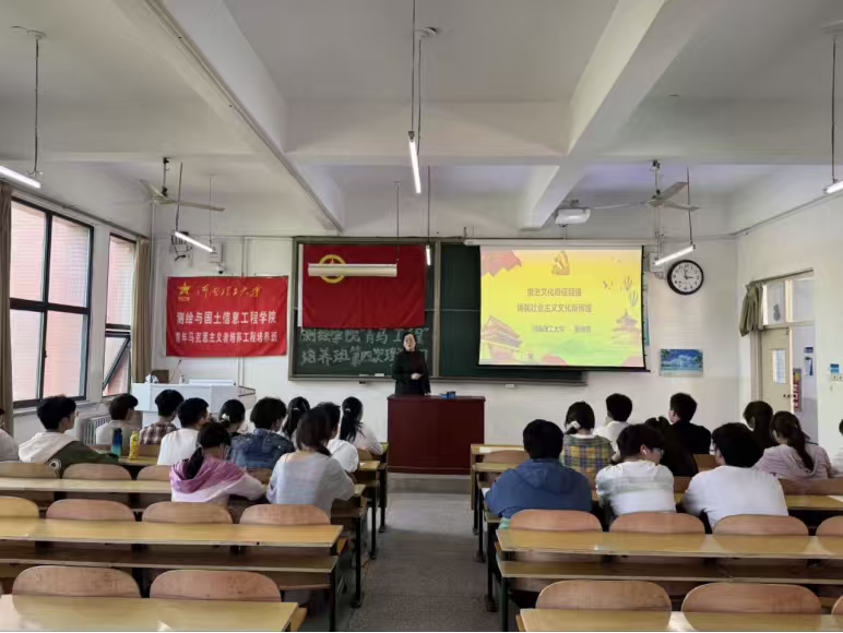 为积极响应上级的组织号召,深入学习习近平文化思想,提升青年的理论素养与责任担当。2026年4月17日,我院团委于测绘学院楼302教室举行测绘学院第十五期“青马工程”培养班第四次理论学习。本次会议特别邀请了马克思主义学院副教授、学校宣讲团成员秦晓慧老师主讲,第十五期“青马工程”培养班全体学员、团委综合办公室全体成员参加本次会议。