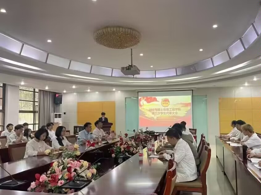 兄弟学院学生会代表先后发言,大会听取了我院第十七届学生会执行主席仝鑫光做的学生会工作报告,审议并通过了《河南理工大学测绘学院学生代表选举方法》,《河南理工大学测绘学院学生代表选举监票人、计票人名单》。选举产生了测绘学院第十八届学生会主席团、参加校第八次学生代表大会和研究生代表大会代表。最后,大会在嘹亮的《中国共产主义青年团团歌》中圆满落幕。