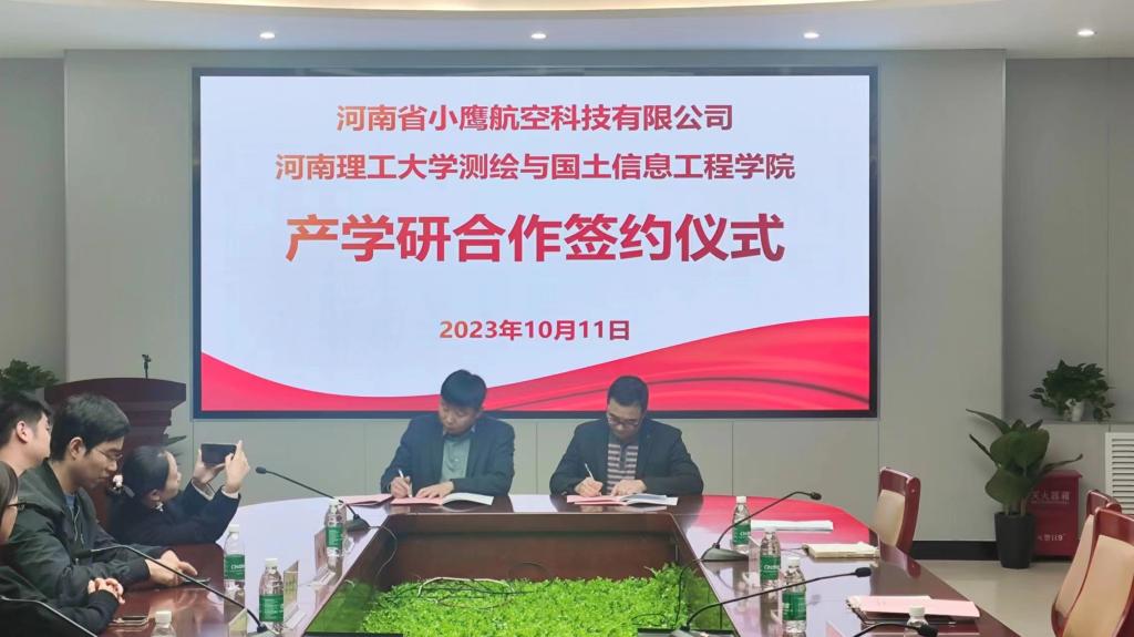 10月11日上午,河南省小鹰航空科技有限公司李万亮总经理等一行六人受邀访问测绘学院,在学院一楼会议室举行产学研合作交流会暨签约仪式。学院院长袁占良、副院长柴华彬、李克昭、何荣以及测量工程系李长春教授等相关教师参加交流,会议由测量工程系主任连增增主持。 会上,袁占良代表学院对小鹰航空一行的来访表示欢迎,对测绘学院发展现状和双一流建设情况进行了详细的介绍,希望双方顺利合作,共同推动校企共赢发展,共同推进无人机技术创新和应用,为学院建设和社会发展做出贡献。 之后,李万亮详细介绍了小鹰航空科技有限公司的发展历程、业务领域和技术能力等方面,并着重阐述了公司未来的发展方向和战略目标,希望通过产学研合作的方式,解决高校需求,推动无人机关键技术突破。小鹰航空校区主管乔峰则介绍了小鹰航空与学校合作的情况,展示了小鹰航空的几款无人机产品,技术主管魏传经进行了编队飞行和穿越机演示,展示现代无人机科技的强大魅力。 随后,双方进行了深入的交流之后,双方一致认为,通过产学研合作的方式,能够有效地推动无人机技术的发展和应用,实现双方的互利共赢。最后,双方在友好和谐的氛围中签订了合作协议。 这次合作协议的签署,标志着小鹰航空科技有限公司与测绘学院的全面合作正式启动。双方将共同致力于无人机技术的研发和应用,加强人才培养和学术交流,推动产学研一体化的发展。相信在双方的共同努力下,学院双一流建设发展和无人机技术在测绘地理信息产业的应用将迎来一个崭新的阶段。