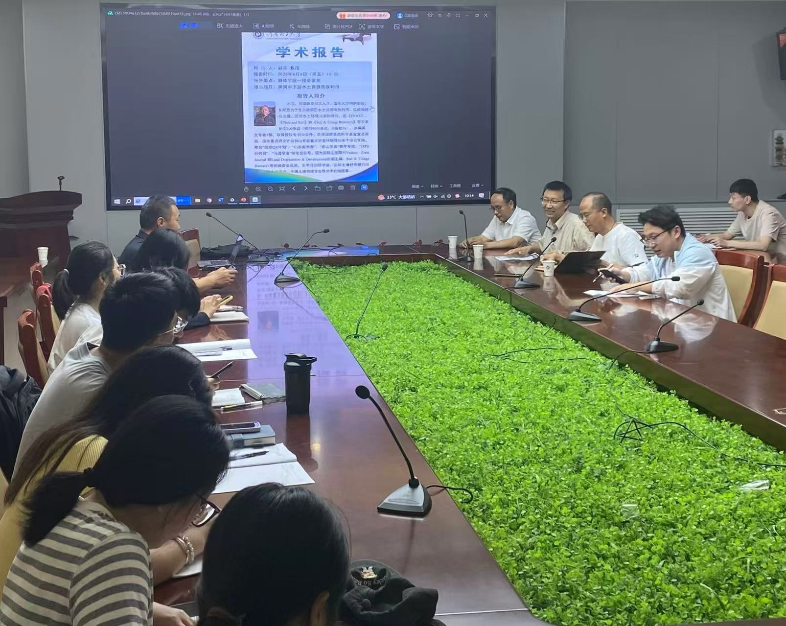 报告会上,赵英教授为师生讲解了黄河中下游关键区水文过程、农业水文学及内陆到沿海的水资源利用管理策略等内容,重点介绍了关键区水文过程学科体系构建,深入剖析了其垂直与水平方向的水文过程,详细说明了其农业生态系统循环演变、土壤水盐耦合过程;同时以黄河中下游面临的不同水资源问题为切入点,结合黄河上游农业用水、黄土高原水热碳关系和黄河三角洲水盐调控等案例研究,阐述了黄河流域从内陆到沿海的资源管理、生态保护与高质量发展策略。在会议交流环节,参会人员围绕报告内容踊跃提问,并就相关问题进行了深入探讨。