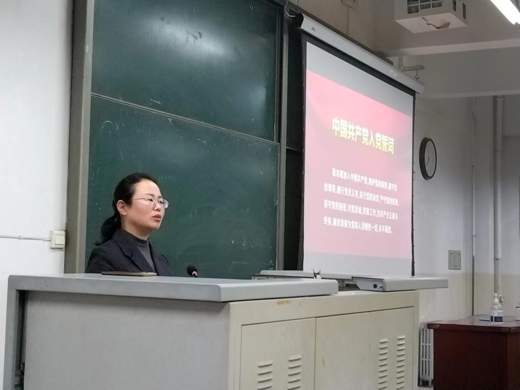 李晶晶老师则从做合格党员,带领大家回望入党初心,再次叩问“为什么要加入中国共产党”,号召大家要顶天立地谈信仰,旗帜鲜明讲政治,自觉践行共产党员的权利和义务,在今后的学习、生活和工作中,自觉把自己的理想同祖国的前途、把自己的人生同民族的命运紧密联系在一起,增强本领,奉献祖国。