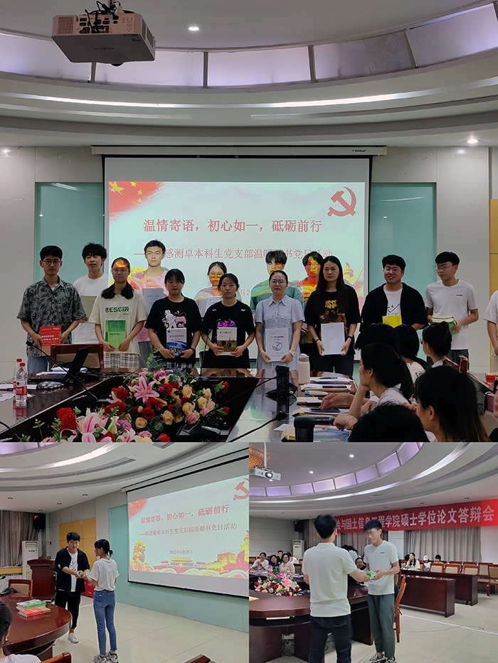 为发挥党组织优势和示范引领作用,促进党员在学习交流中坚定理想信念、践行初心使命,在毕业季真情服务师生,乐学尚学促发展,用心用情办实事。5月28日下午3点,测绘学院遥感测卓专业本科生党支部在学院一楼会议室召开了以“温暖赠书、温情寄语;初心如一、砥砺前行”为主题的党日活动,支部书记李静老师、支部副书记杨永菊老师及遥感测卓专业本科生党支部全体党员共70余人参加本次党日活动。