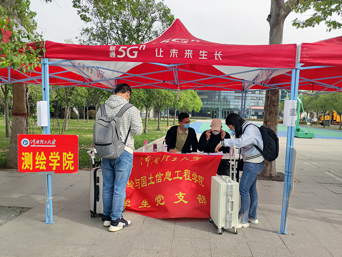 4月21、22日,是测绘学院因实习实训等原因未能及时返焦返校学生返校的日子。为充分发挥基层党组织战斗堡垒和党员先锋模范作用,测绘学院本科生各党支部积极组织学生党员,在返校日开展志愿服务活动,为学院学生的返校复学保驾护航,助力学生顺利返校。