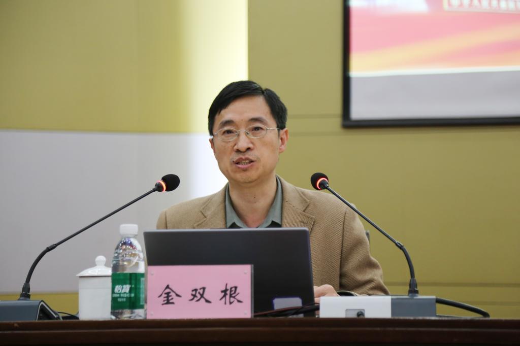 315日下午,全国人大代表,我校学术副校长金双根全国两会精神专题报告会《领会贯彻两会精神,提振鼓足发展信心》在力行楼学术报告厅举行,测绘学院、国际处(国教院)、国资处等单位教工、学生代表近200人参加。会议由测绘学院党委书记张红霞主持。